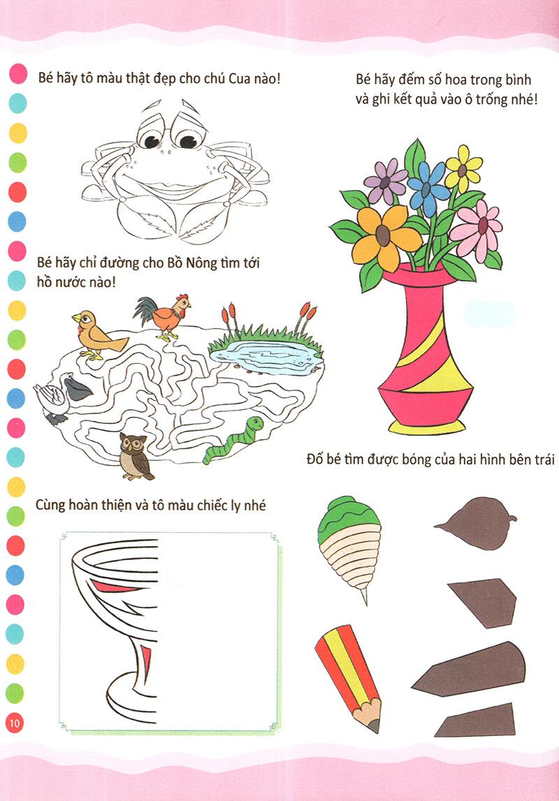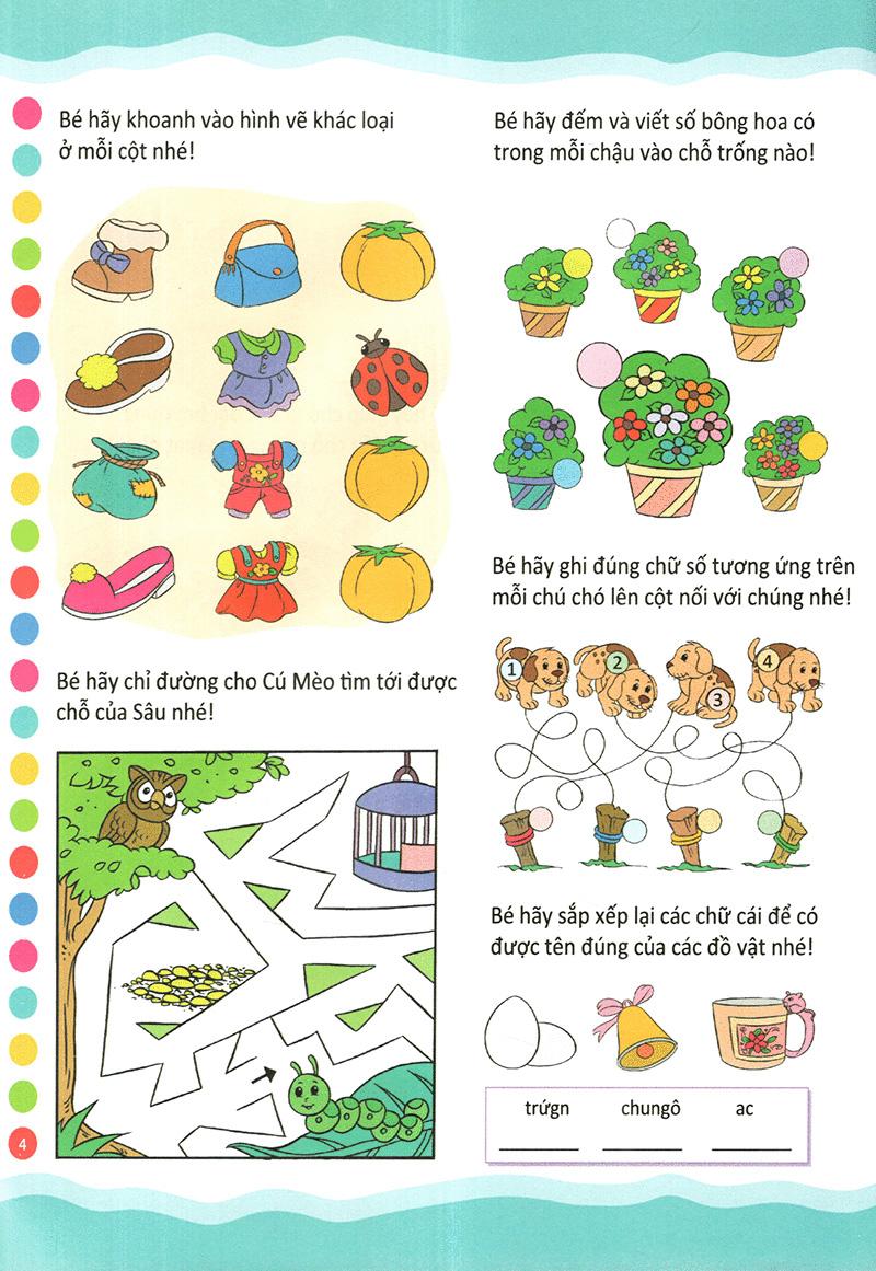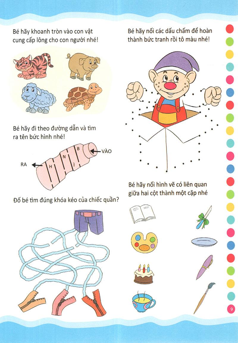 Quyển sách, có tô màu, có tính toán, có vẽ tranh, có trò chơi tìm đồ vật cất giấu, nối hình cho những sự vật hiện tượng có liêu quan, có tư duy logic… Bé từ đó được làm các dạng trò chơi khác nhau để phát triển về tư duy. Thông qua các trò chơi tư duy này, bạn có thể giúp bé rèn luyện trí não một cách tốt nhất, giúp bé biết hệ thống, luôn tự tin và biết cách xử lý các tình huống một cách nhạy bén hơn.