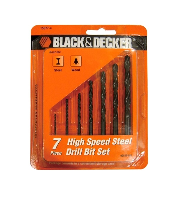 Thương hiệu: BLACK+DECKER (MỸ) Hộp mũi khoan kim loại 7 chi tiết Giới thiệu sản phẩm BLACK+DECKER - 15077G Hộp mũi khoan kim loại 7 chi tiết