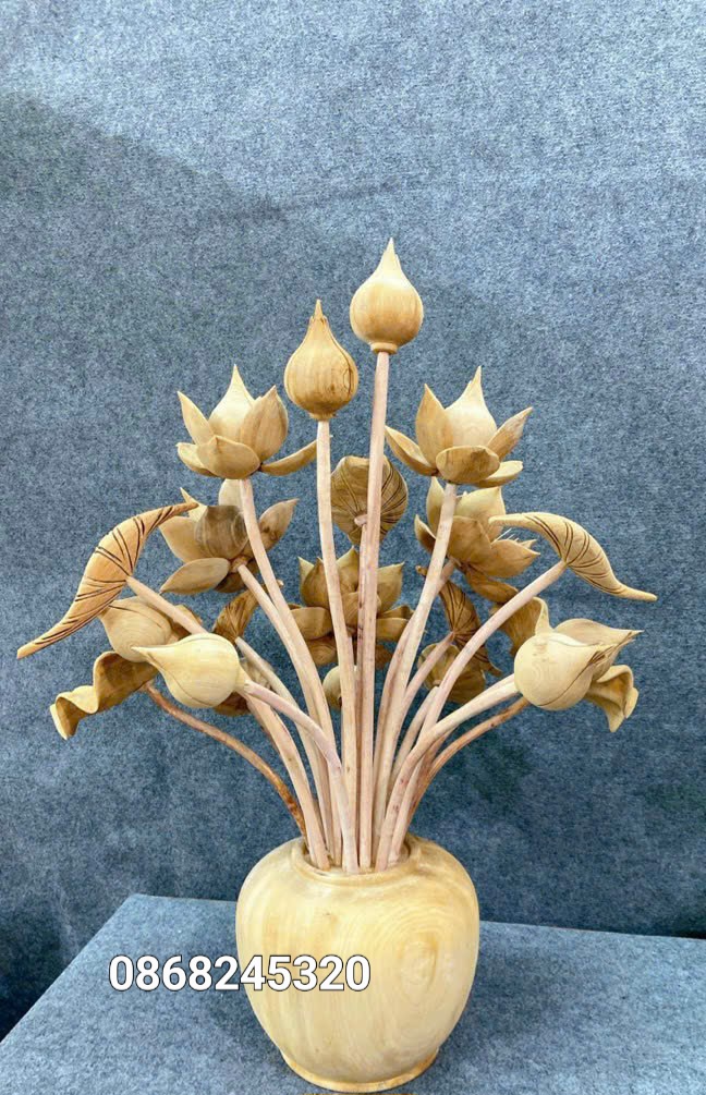 2 bình hoa sen 21 cành trang trí phòng khách ,phòng thờ được làm bằng chất liệu gỗ ngọc am thơm nức tự nhiên 100% kt bình cắm hoa cao 20 thân tròn 23,5cm + hoa lá gương cao tổng 75 xòe rộng 55 sâu 40cm _ Bình hoa sen được gọt tỉa tỉ mỉ ,tinh xảo kỳ công .Đi hầu hết tất cả mọi chi tiết góc ngách nội dung hoa văn của bình hoa sen đều được chỉnh sửa ,đi chỉnh sửa lại bằng tay thủ công .Bình hoa sen được làm và hoàn thiện do bàn tay khối óc tài hoa .Từ những người thợ giàu kinh nghiệm ,cũng như tay nghề cao trong làng nghề truyền thống .