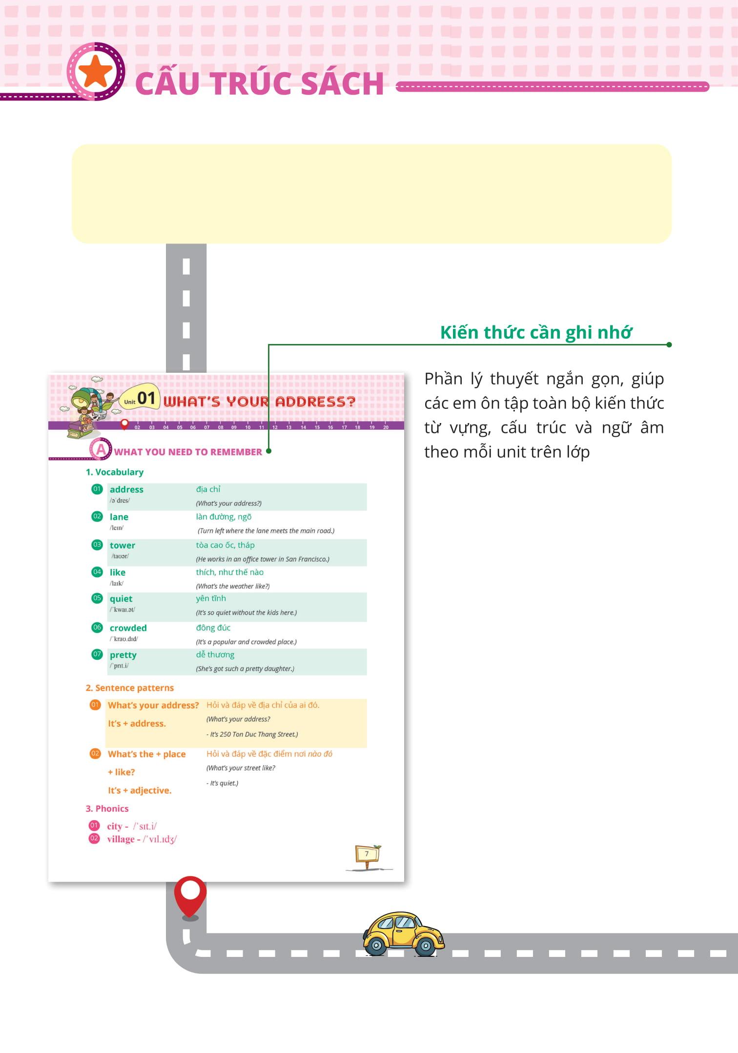 Phần lý thuyết ngắn gọn, giúp các em ôn tập toàn bộ kiến thức từ vựng, cấu trúc và ngữ âm theo mỗi unit trên lớp