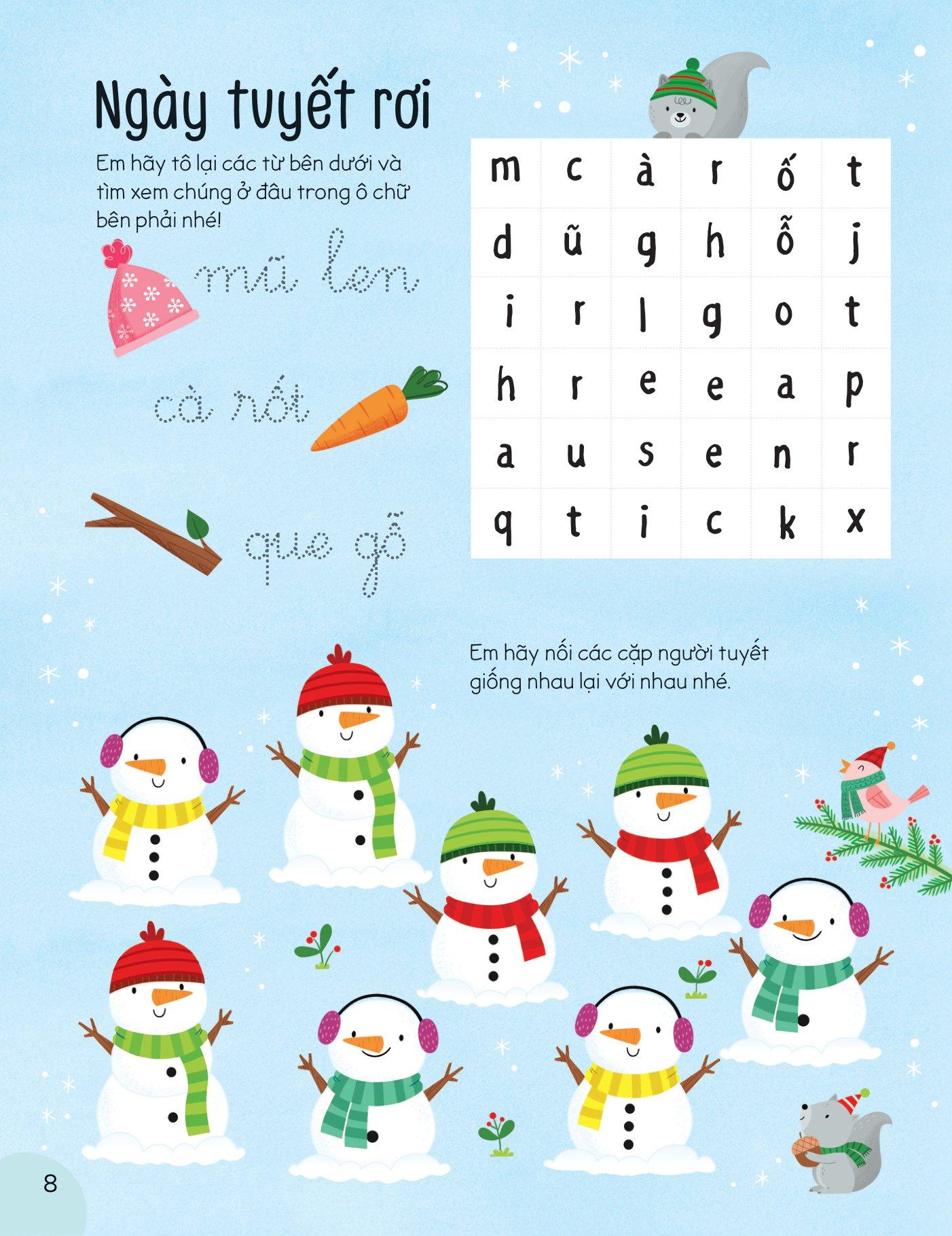 Ngoài ra còn rất nhiều các hoạt động khác như: Giải ô chữ, nối số, vẽ tranh, giải mã mê cung… đang chờ bạn nhỏ khám phá trong cuốn sách này đấy! Hãy cùng thỏa sức sáng tạo để làm nên một mùa Giáng Sinh thật diệu kỳ nhé!