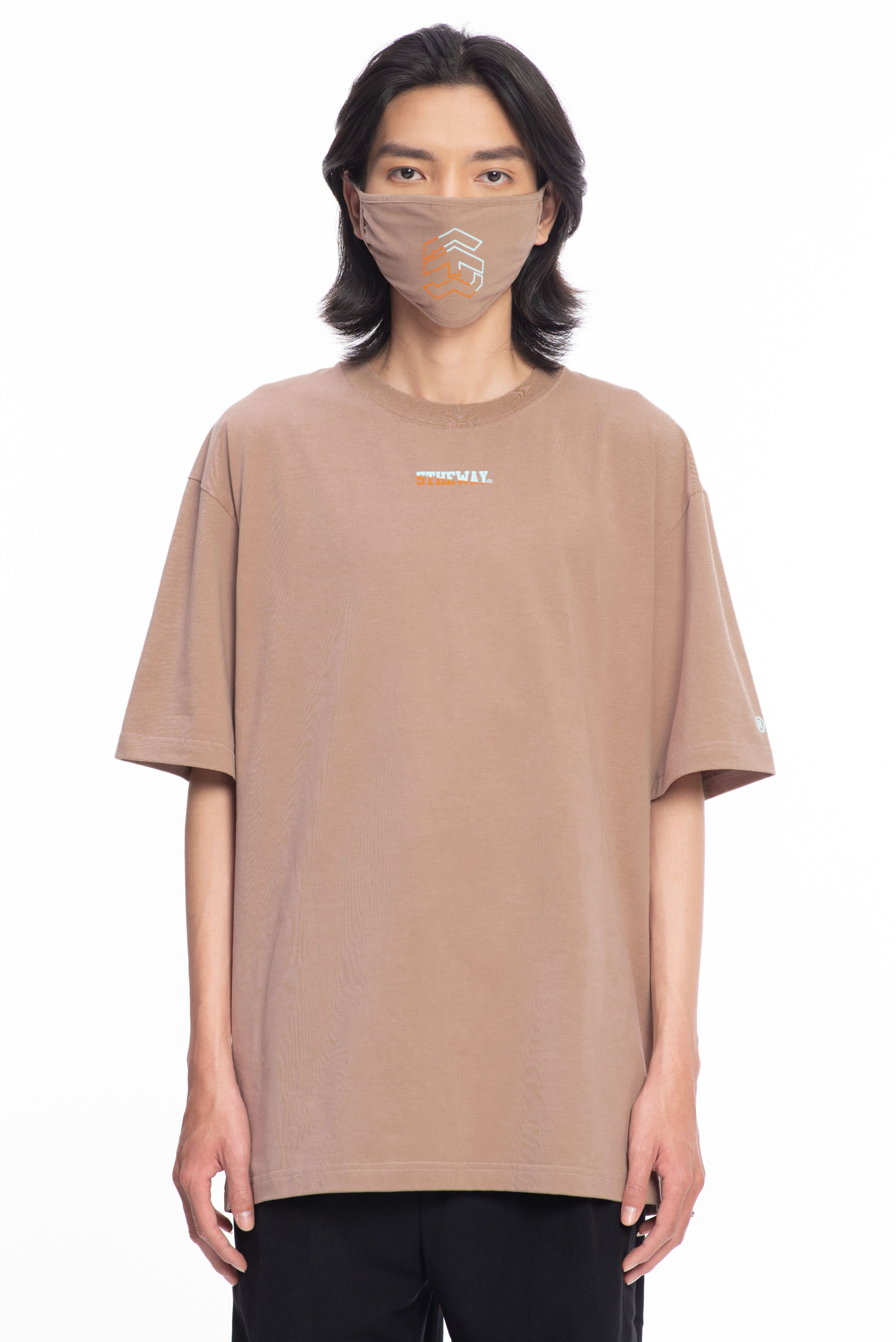 ✨5THEWAY /two-tone line/ BIG LOGO MASK in GREIGE aka Khẩu Trang Nâu Nhạt