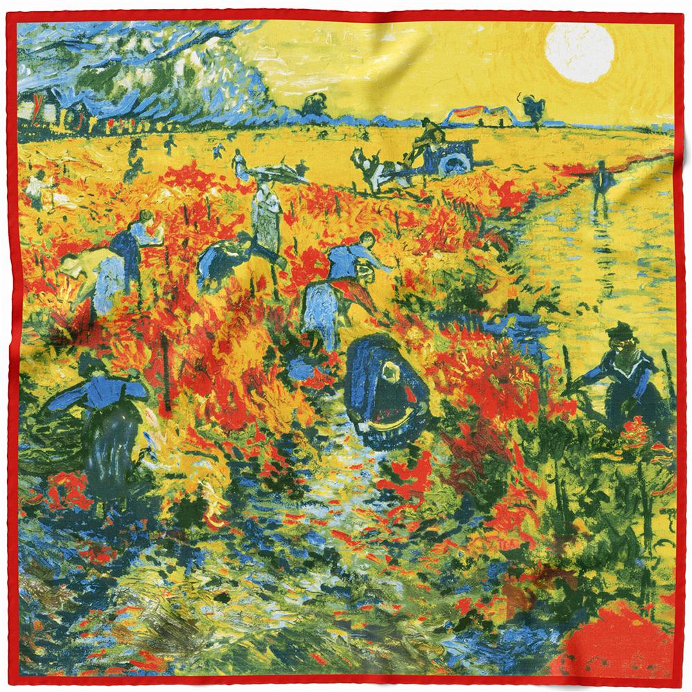 Chất liệu satin giả lụa Kích thước 90x90cm In họa tiết tranh cổ điển, tạo phong cách cá tính, Vintage Phù hợp làm khăn đội đầu, khăn quàng cổ, làm áo yếm BlackPink Cam kết giao hàng như hình. ..
