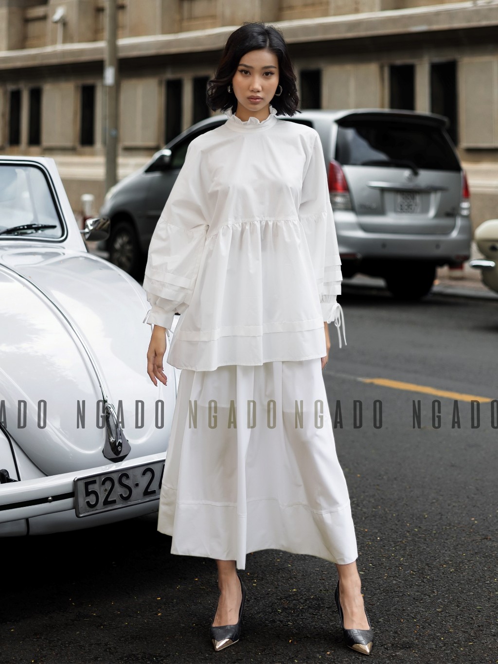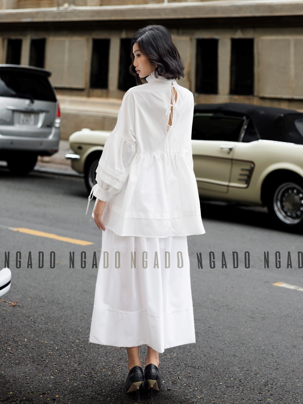 ✨Áo babydoll trắng NGADO , Áo kiểu nữ , Áo tay phồng cột nơ