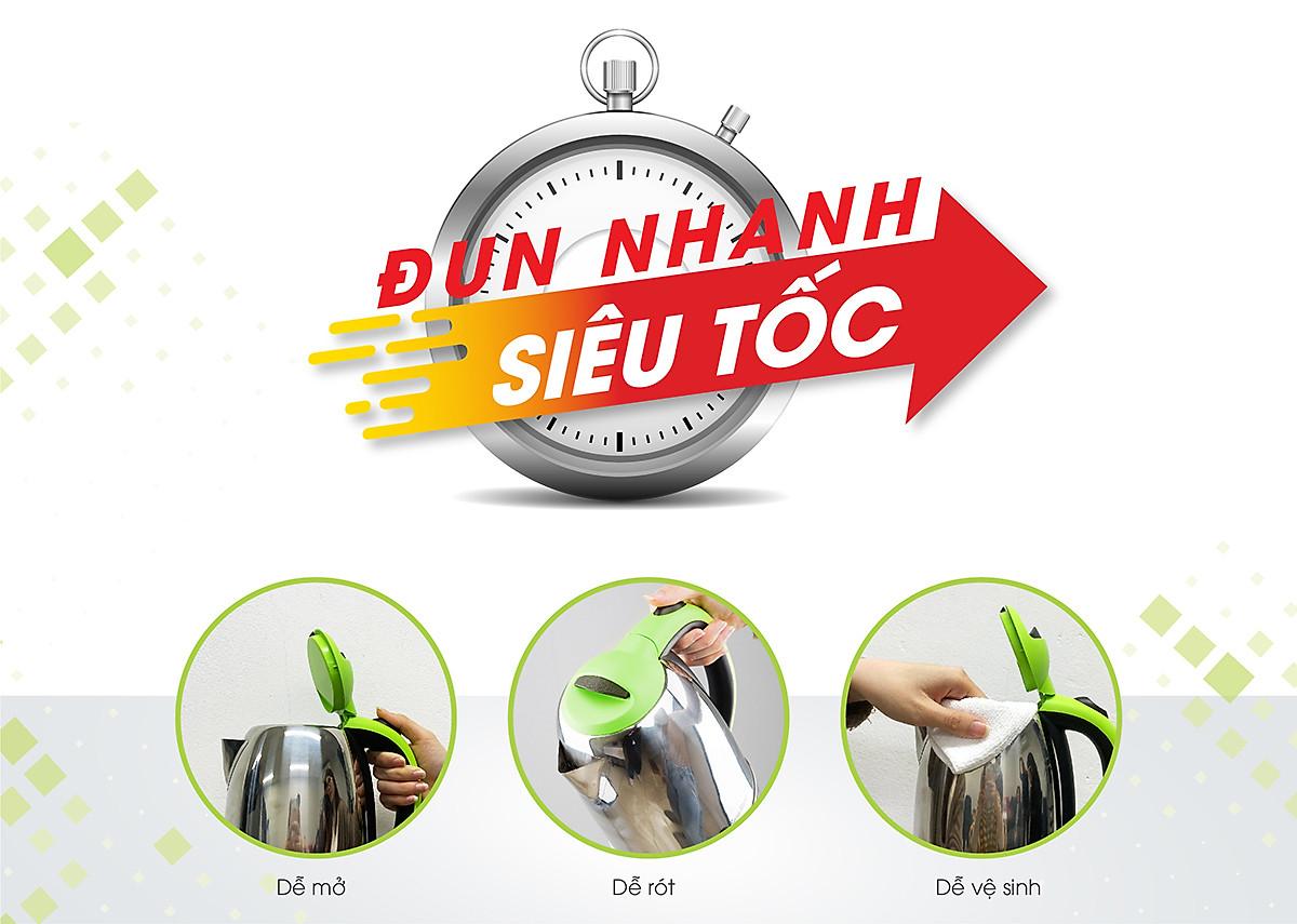 Đặc điểm nổi bật: Dung tích 1.7 lít đáp ứng nhu cầu sử dụng của gia đình Công suất tối đa 2200W giúp đun sôi nước nhanh chóng Mâm nhiệt bằng thép không gỉ, tuổi