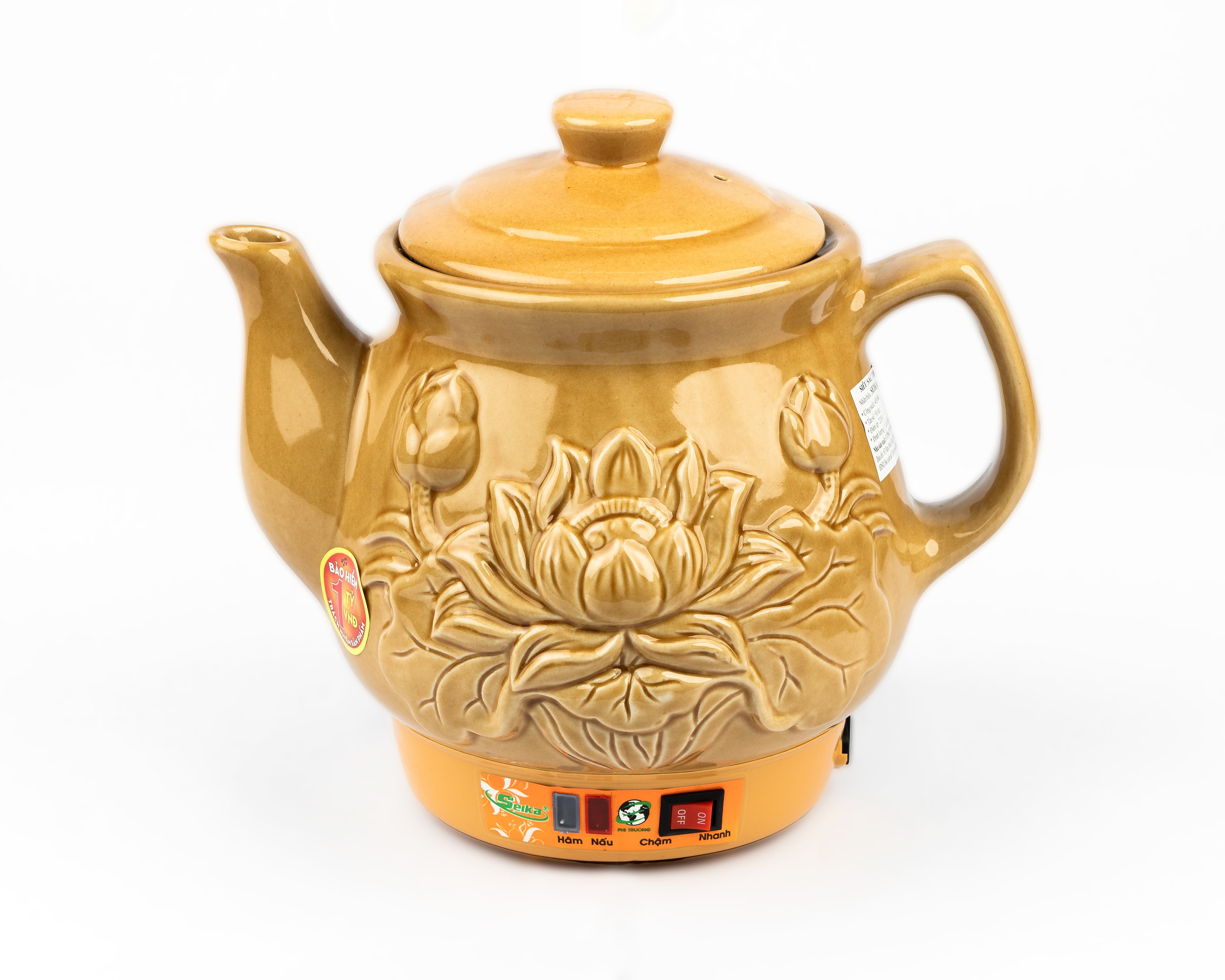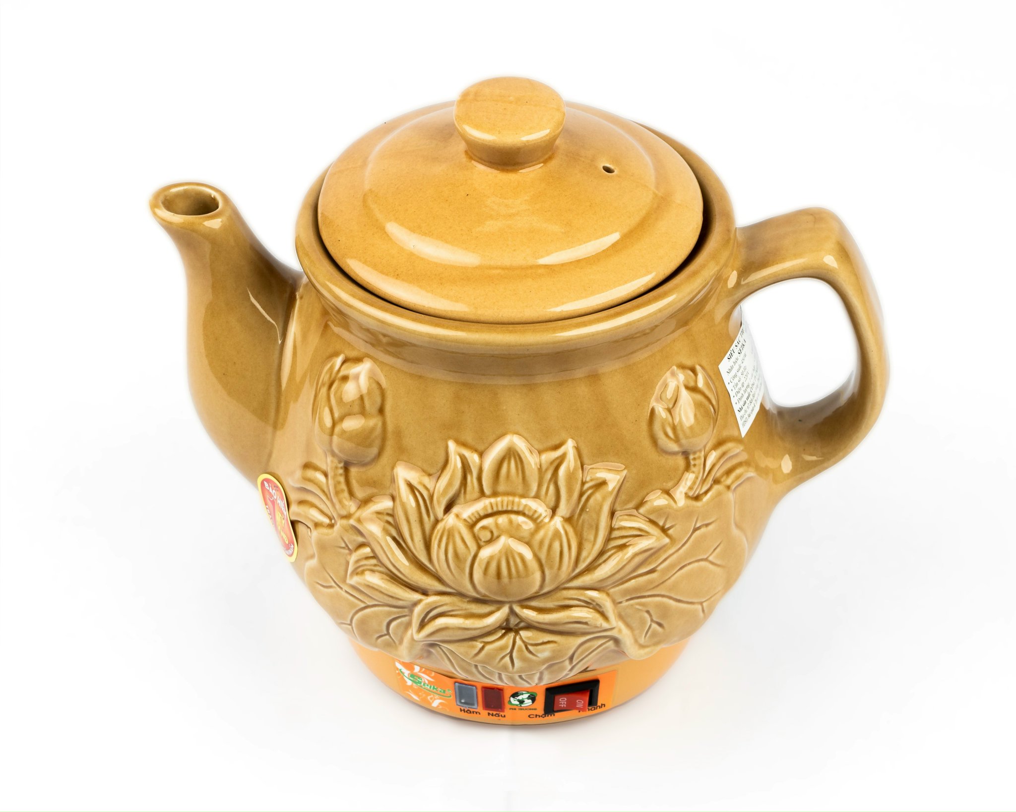 - Dung tích: 3.2L / Công suất: 450W - Chất liệu gốm được nung ở nhiệt độ 1300 độ C - Hoàn toàn khử hết chì trong đất. - Men phủ ấm là men tự