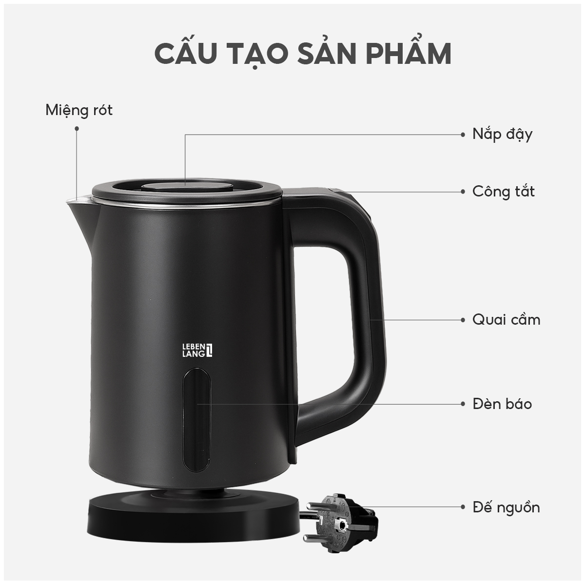 Ấm Siêu Tốc Mini Lebenlang LBL2318, Dung Tích 800ml, Công Suất 1000W, Inox An Toàn, Thiết Kế Nhỏ Gọn Du Lịch, Bảo Hành 2 Năm I. THÔNG SỐ KỸ THUẬT