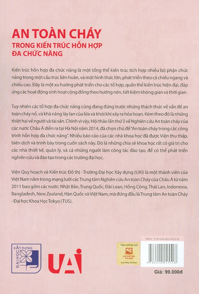 An Toàn Cháy Trong Kiến Trúc Hỗn Hợp Đa Chức Năng Kiến trúc cao tầng và Kiến trúc hỗn hợp đa chức năng là các loại hình kiến trúc phát triển trong thế giới đương đại. Hai cuốn sách “An toàn cháy trong kiến trúc hỗn hợp đa chức năng” và “An toàn cháy trong kiến trúc cao tầng và siêu cao tầng ở Việt Nam” sẽ mang đến cho người đọc cái nhìn khoa học về công tác tư vấn thiết kế, nghiên cứu và đào tạo.   Các thế hệ kiến trúc Nhà cao tầng đã liên tục cải thiện chất lượng kiến trúc, không gian sử dụng, đem tới cho con người sự tiện nghi và những ưu điểm không thể chối cãi trong xu hướng phát triển đô thị hiện nay. Với không gian tập trung phát triển theo chiều thẳng đứng, kiến trúc cao tầng không chỉ tiết kiệm đất đai, mà còn tiết kiệm cả việc đầu tư cơ sở hạ tầng, không chỉ tiết kiệm không gian mà cả thời gian. Kiến trúc hỗn hợp đa chức năng là một tổng thể kiến trúc tích hợp nhiều bộ phận chức năng trong một cấu trúc liên hoàn, và một hình thức lớn, phát triển theo cả chiều ngang và chiều cao. Đây là một xu hướng phát triển cho các tổ hợp, quần thể kiến trúc hiện đại, đáp ứng các hoạt động sinh hoạt cộng đồng theo hướng nén, tiết kiệm không gian và thời gian. Ngày nay, cả kiến trúc cao tầng và kiến trúc hỗn hợp đa chức năng đều phải đối mặt với sự đảm bảo về an toàn cháy. Đặc biệt, với những thách thức của biến đổi khí hậu toàn cầu thì những rủi ro của thiên tai, những trận động đất mà không ai ngờ tới có thể xuất hiện nhiều hơn. Việc thiết kế các tòa nhà cao tầng và tổ hợp kiến trúc đa chức năng cần phải đảm bảo an toàn sinh mạng cho con người khi xảy ra hỏa hoạn,  giúp người dân di chuyển nhanh nhất ra khỏi khu vực nguy hiểm, đảm bảo để các bộ phận cứu hộ, cứu hỏa có thể tiếp cận tốt nhất tới khu vực hỏa hoạn, đồng thời chống lan truyền lửa và khói sang các khu vực lân cận. Cuốn sách “An toàn cháy trong kiến trúc hỗn hợp đa chức năng” được Viện UAI biên tập dựa trên các báo cáo khoa học của các nhà khoa học tham gia hội thảo làn thứ 3 về Nghiên cứu An toàn cháy của các nước châu Á, diễn ra tại Hà nội năm 2014. Trong khi đó cuốn sách “An toàn cháy trong kiến trúc cao tầng và siêu cao tầng ở Việt Nam” được xây dựng trên cơ sở Chương trình khoa học và công nghệ cấp Bộ “Thiết kế và thi công nhà siêu cao tầng ở Việt nam” của Đại học Xây dựng do PGS.TS Doãn Minh Khôi là chủ nhiệm đề tài nhánh “An toàn sinh mạng trong kiến trúc siêu cao tầng ở Việt Nam”. Cả hai cuốn sách này đều là những tài liệu khoa học có ý nghĩa quan trọng trong công tác tư vấn thiết kế, nghiên cứu và đào tạo tại các trường đào tạo KTS và KSXD. Hy vọng chúng sẽ mang tới cho người đọc những kiến thức cơ bản và chuyên sâu trong lĩnh vực an toàn cháy- điều mà tất cả chúng ta đều quan tâm.