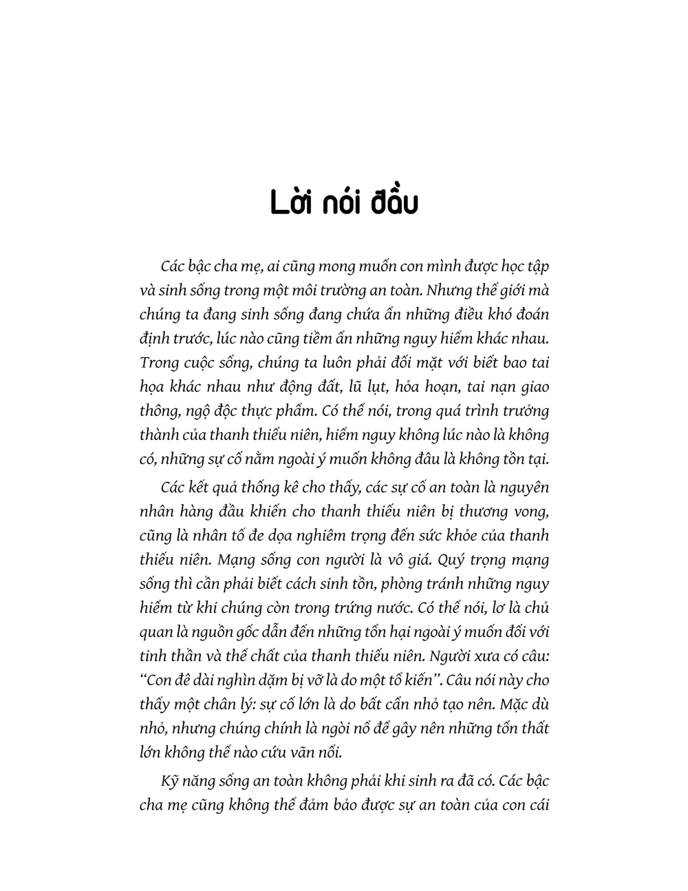 An toàn khi tham gia các hoạt động ngoài trời và phòng chống thiên tai cung cấp một số kiến thức, kỹ năng đảm bảo an toàn khi tham gia các hoạt động ngoài trời, hạn chế tối đa nguy cơ xảy ra các sự cố ngoài ý muốn; những đặc trưng, quy luật của thiên tai để từ đó đưa ra những dự đoán và biện pháp phòng chống, giúp tự bảo vệ an toàn của bản thân, giảm thiểu những tổn thất do thiên tai gây ra xuống mức thấp nhất.
