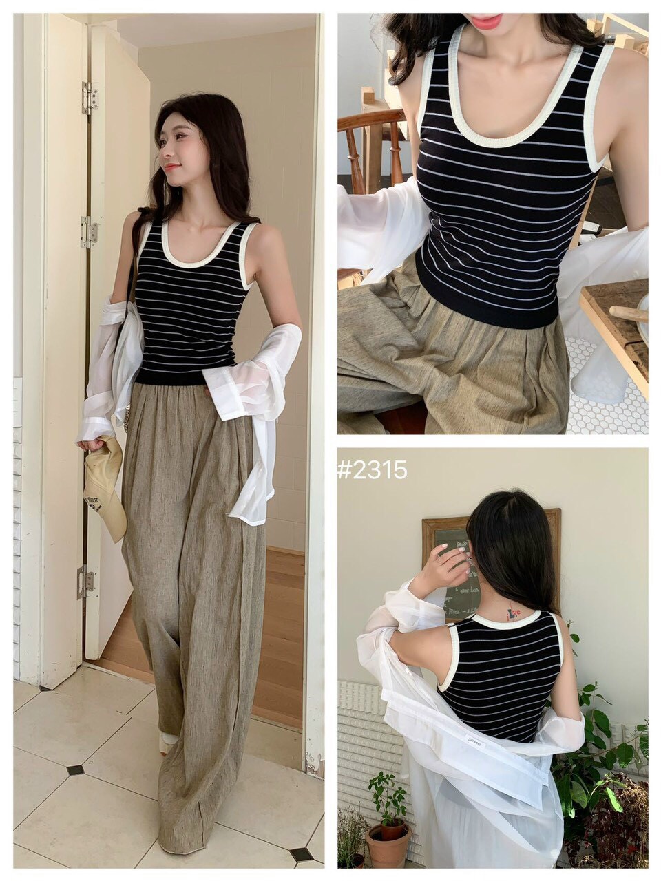 Áo 3 lỗ phối kẻ ngang tích hợp đệm ngực cao cấp AZ2315, áo tank top thun dày dặn đơn giản cho nữ Mô tả chi tiết: