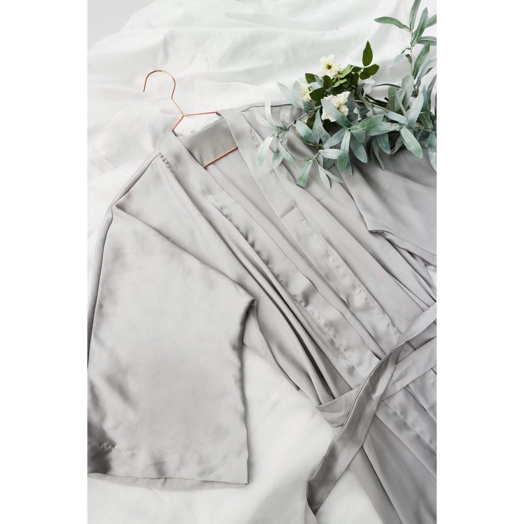 Bộ choàng đơn giản màu xanh Bên cạnh việc sử dụng chất liệu lụa satin, còn điểm xuyết chi tiết thêu ren trong hầu hết các mẫu thiết kế, để giúp người mặc khoe trọn