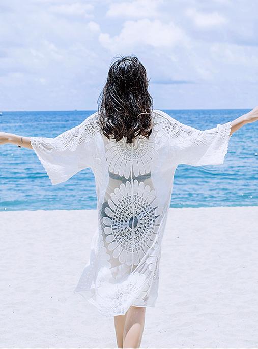 Khi diện những bộ bikini mà phối thêm chiếc áo choàng ren thì các nàng sẽ càng thêm sexy, trẻ trung, năng động và điệu đà lắm đó. Mẫu áo choàng ren với họa tiết