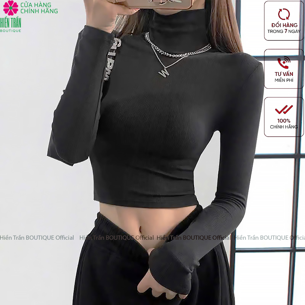 Áo croptop dài tay nữ Hiền Trần BOUTIQUE là sản phẩm cổ lọ được làm từ chất vải cotton co giãn, giữ nhiệt tốt và ôm sát cơ thể, mang đến phong cách cá tính cho phái đẹp.