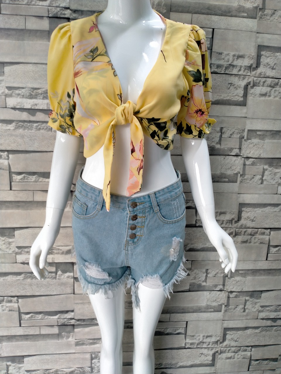ÁO HOA CROPTOP THẮT NƠ EO XINH SẮN Kiểu Dáng Thanh Lịch, Dễ Phối Cùng Nhiều Kiểu Trang Phục Phom dáng ao chuẩn đẹp Là mẫu quần thiết kế đường kim mũi chỉ sắc xảo,