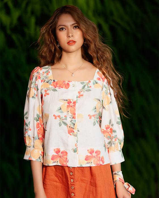Áo Croptop Linen Hibiscus TOP132 Hoa Dâm Bụt Thời trang thiết kế Hity
