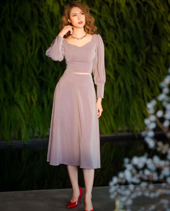 Áo croptop tay lửng vải tơ thêu tinh tế, thanh lịch, trẻ trung. Áo 2 lớp với áo lót trong rời, dáng croptop ngắn quyến rũ. Áo có thể phối với chân váy nữ tính,
