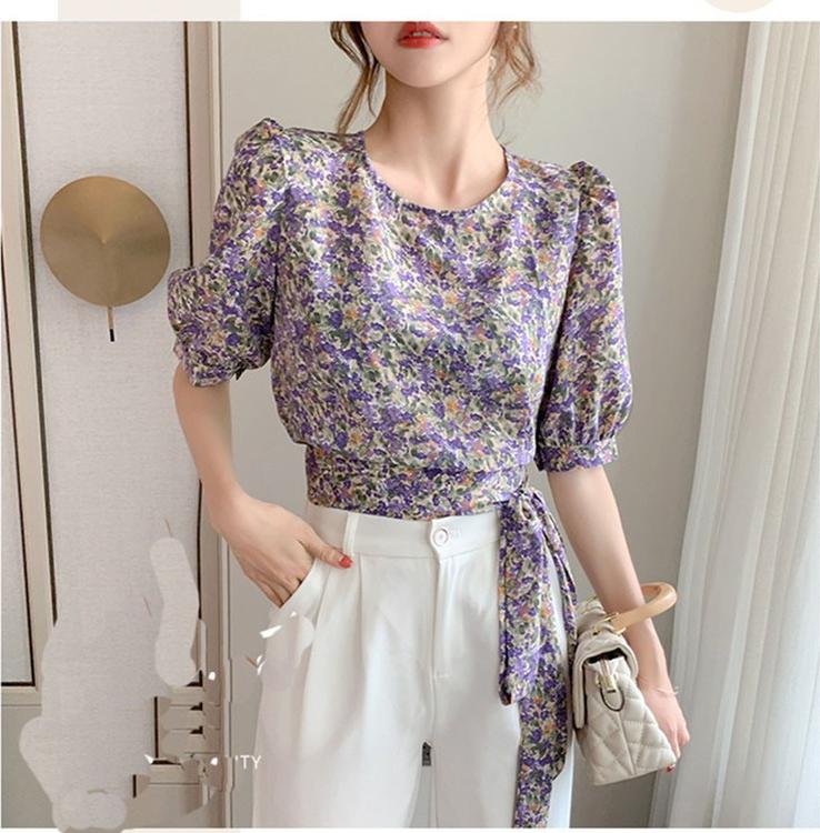ÁO HOA CROPTOP THẮT NƠ EO XINH SẮN Kiểu Dáng Thanh Lịch, Dễ Phối Cùng Nhiều Kiểu Trang Phục Phom dáng ao chuẩn đẹp Là mẫu quần thiết kế đường kim mũi chỉ sắc xảo,