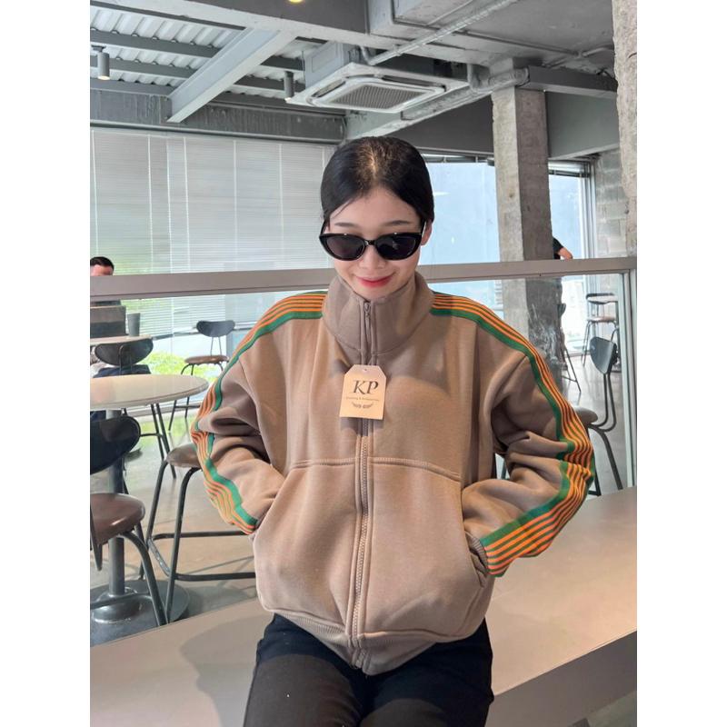 Áo khoác nữ nỉ chống nắng Croptop 3 Sọc Dáng Rộng Mũ To 3 sọc là sự lựa chọn hoàn hảo cho các cô gái yêu thích phong cách thời trang năng động và cá