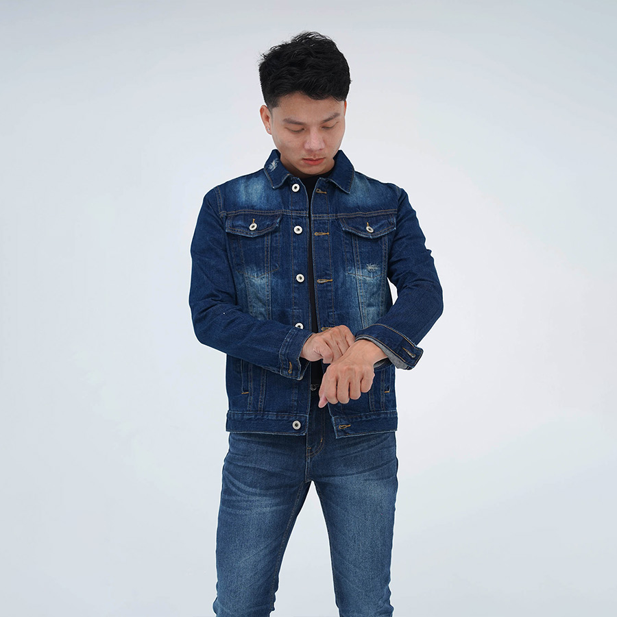 Thông tin chi tiết của sản phẩm áo khoác jean nam màu xanh cơ bản cào xước - Xuất xứ: Việt Nam - Chất liệu : Jean dệt cực chuẩn, không nhăn, có độ bền