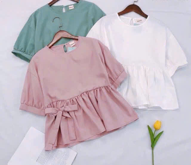 - Áo kiểu nữ đẹp với dáng áo babydoll được thiết kế không quá dài, cổ áo là cổ tròn, tay áo nhún tạo kiểu, thoải mái khi vận động.