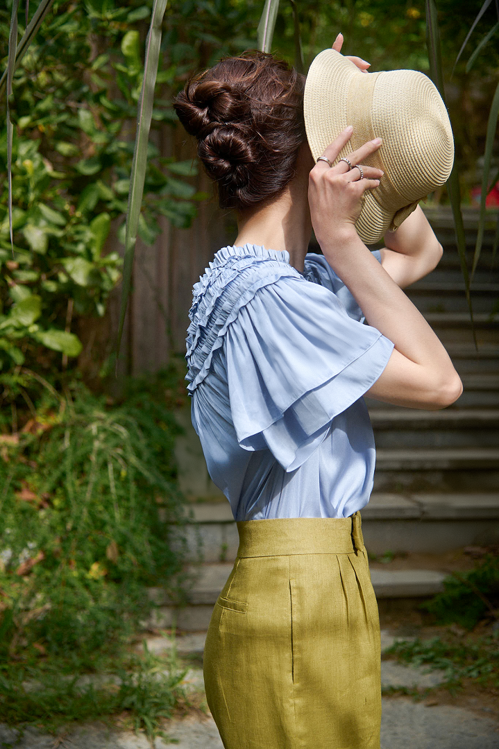 Nhấn các đường nhún thủ công tinh xảo quanh cổ