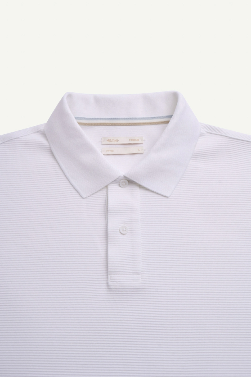 Áo polo tay ngắn nam vải gân phối tape. Fitted - RT 10S25POL003P | ROUTINE CÀ MAU Đặc điểm nổi bật Form : Fitted Fabric : Jacquard Gender: Nam Kiểu tay: Tay ngắn Collection: Together
