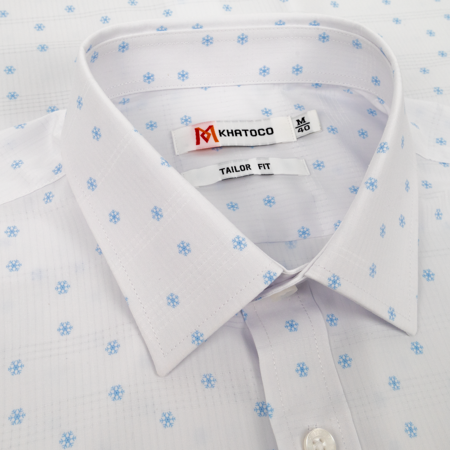 (V) MÔ TẢ: Form Taylor, tai dài Form áo tiêu chuẩn với form áo rộng vừa phải, không ôm sát cơ thể, bó nhẹ ở vùng eo và tay áo. Độ rộng vùng ngực và nách cũng sẽ fit hơn với cơ thể. Không quá rộng như form áo cổ điển. Màu vải nhã nhặn và trung tính dễ dàng phối trang phục tạo sự lịch lãm, nam tính Nút ton-sur-ton khắc logo đẹp mắt phối trọn vẹn màu áo. Logo thêu sắc nét trên túi áo. Chất liệu:50%POLYESTER- 24%COTTON-2%SPANDEX- 24%VISCOSE(BAMBOO) |Mềm mịn|Thấm hút |Kháng khuẩn|Độ thoáng khí cao|Chống tia UV|Chống nhăn|Chống co rút |Nhanh khô|Dễ vệ sinh làm sạch|Đứng phom áo Màu sắc : Màu Xanh họa tiết