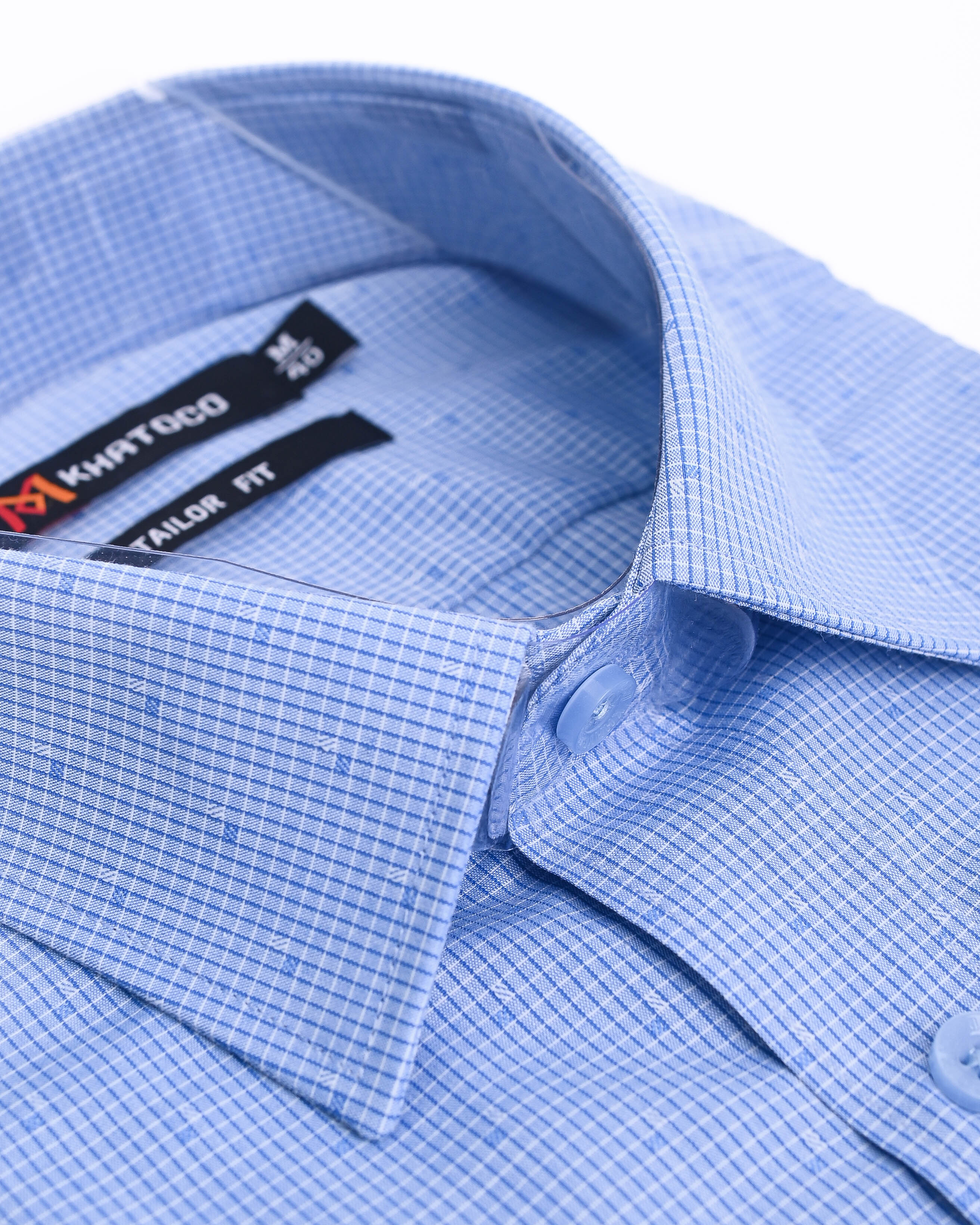 (V) MÔ TẢ: Form Taylor, tai dài Form áo tiêu chuẩn với form áo rộng vừa phải, không ôm sát cơ thể, bó nhẹ ở vùng eo và tay áo. Độ rộng vùng ngực và nách cũng sẽ fit hơn với cơ thể. Không quá rộng như form áo cổ điển. Màu vải nhã nhặn và trung tính dễ dàng phối trang phục tạo sự lịch lãm, nam tính Nút ton-sur-ton khắc logo đẹp mắt phối trọn vẹn màu áo. Logo thêu sắc nét trên túi áo. Chất liệu:50%POLYESTER- 24%COTTON-2%SPANDEX- 24%VISCOSE(BAMBOO) |Mềm mịn|Thấm hút |Kháng khuẩn|Độ thoáng khí cao|Chống tia UV|Chống nhăn|Chống co rút |Nhanh khô|Dễ vệ sinh làm sạch|Đứng phom áo Màu sắc : Màu Xanh họa tiết