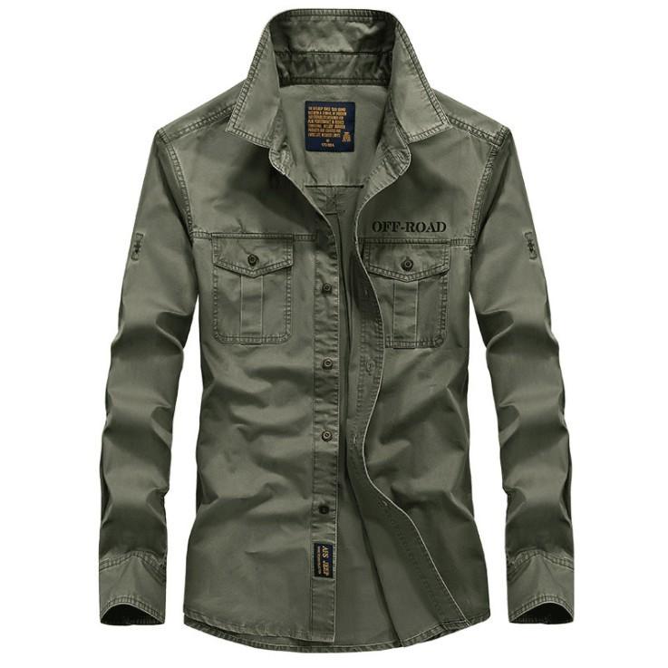 Áo sơmi lính tay dài phong cách off road dã ngoại Được làm bằng chất liệu kaki mềm mặc rất bụi và đúng phom áo Chất liệu vải dày vừa phải nên có thể mặc
