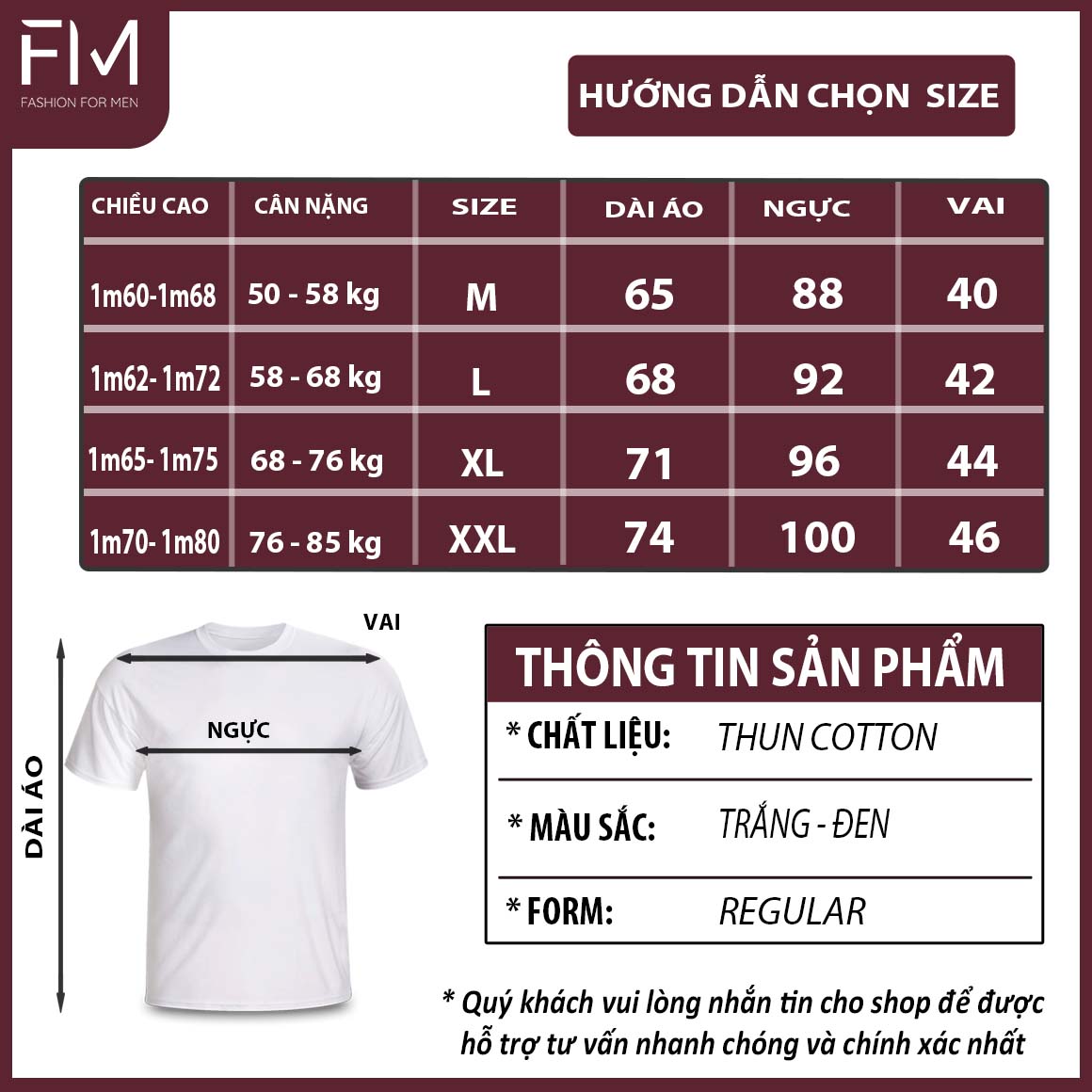 - Xuất xứ: Việt Nam Bảng màu: Đen – Trắng. Áo thun nam phông rộng cổ tròn ngắn tay in hình trước ngực dễ phối đồ của Formen shop là sản phẩm chắc chắn bạn phải có trong tủ quần áo với bảng màu vô cùng đa dạng, giúp bạn có thể thay đổi phong cách hàng ngày. Kích thước: + M Chiều cao 1M6-1M68 / Cân nặng: 50-60 kg + L Chiều cao 1M62-1M72 / Cân nặng: 60-70 kg + XL Chiều cao 1M65-1M75 / Cân nặng: 70-76 kg + XXL Chiều cao 1M70- 1M80/ Cân nặng: 76-85 kg (Số đo người mẫu: 68kg – 1M77 mặc size XL) Liên hệ ngay với Formen shop để được tư vấn size khi cần bạn nhé Hướng dẫn sử dụng và bảo quản: