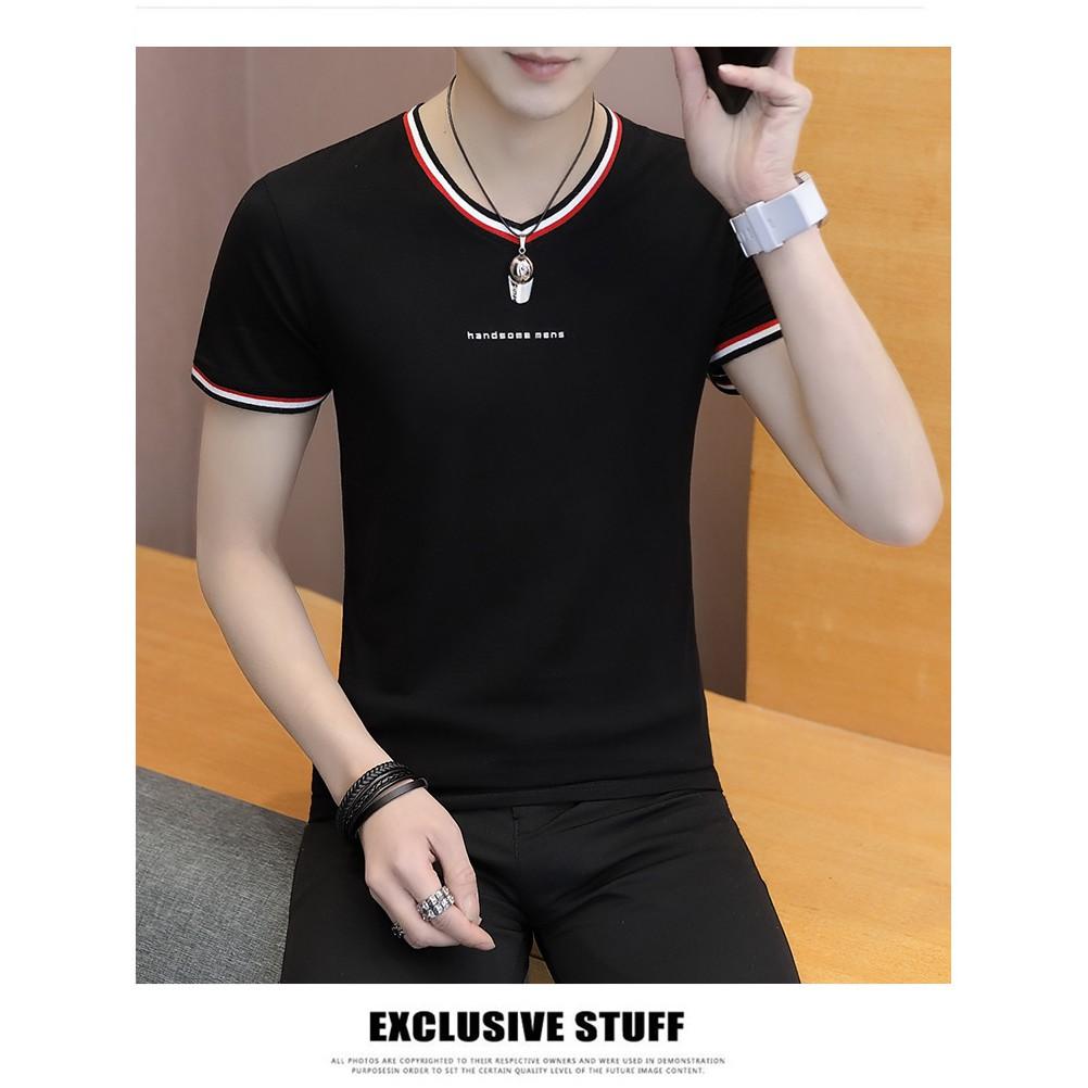 ✨Áo thun nam ngắn tay cổ tim body thời trang - Đen