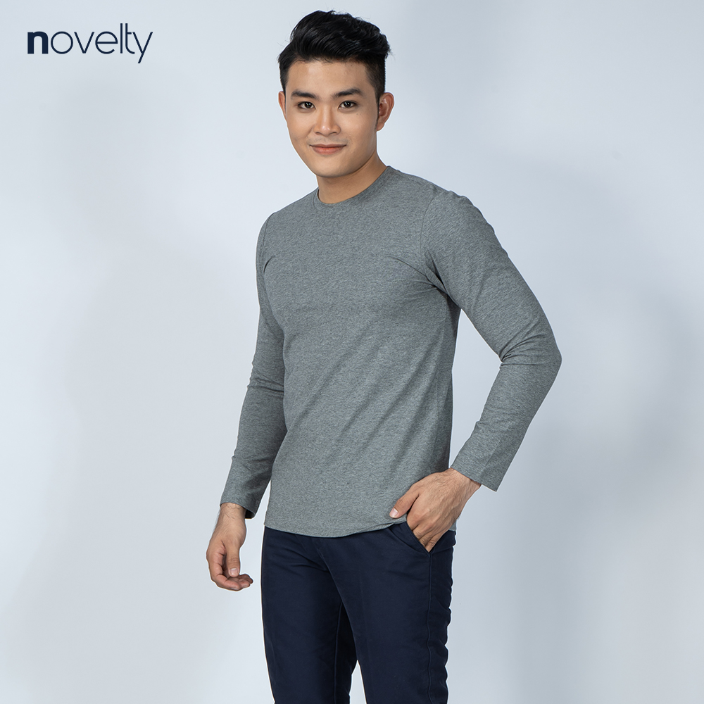Áo thun nam dài tay Novelty cổ tròn trắng, xanh đen, xám đậm, xám nhạt Chất liệu: 92%Cotton 8%Spandex Form dáng: Regular Fit Thiết kế cổ tròn Basic Thoáng mát, bề mặt mịn nhẹ không gây kích ứng cho da Thun cotton co dãn 4 chiều Thoải mái cho vận động