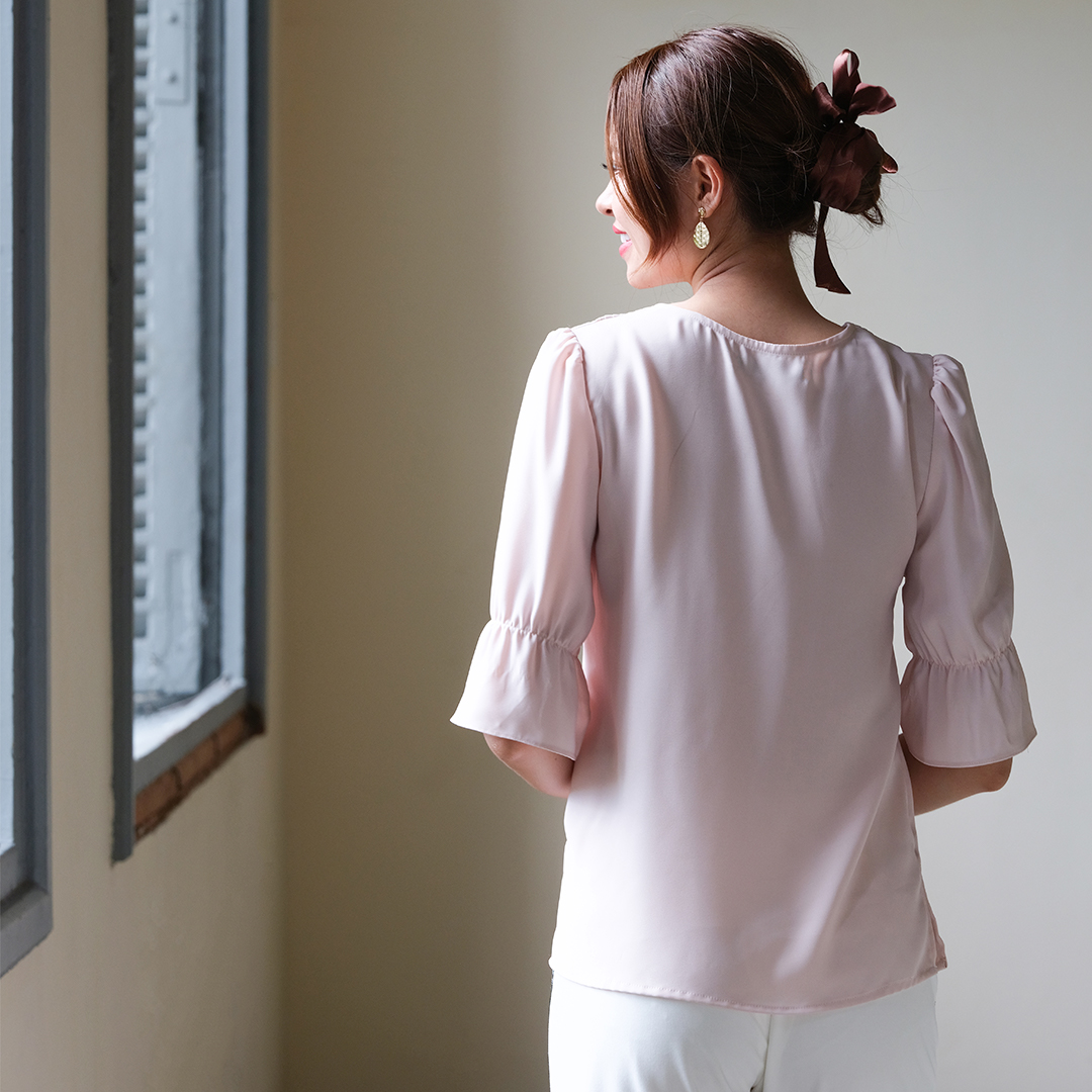 Không chỉ đơn thuần là cổ V xếp ly, thiết kế áo của Hity nổi bật với chi tiết tay phồng biến tấu cùng phần tay chun lạ mắt để tạo nét khác biệt cho phong cách công sở. Thiết kế áo vừa duyên dáng nữ tính, vừa quyến rũ nhất định mà vẫn đảm bảo nét thanh lịch chỉnh chu.