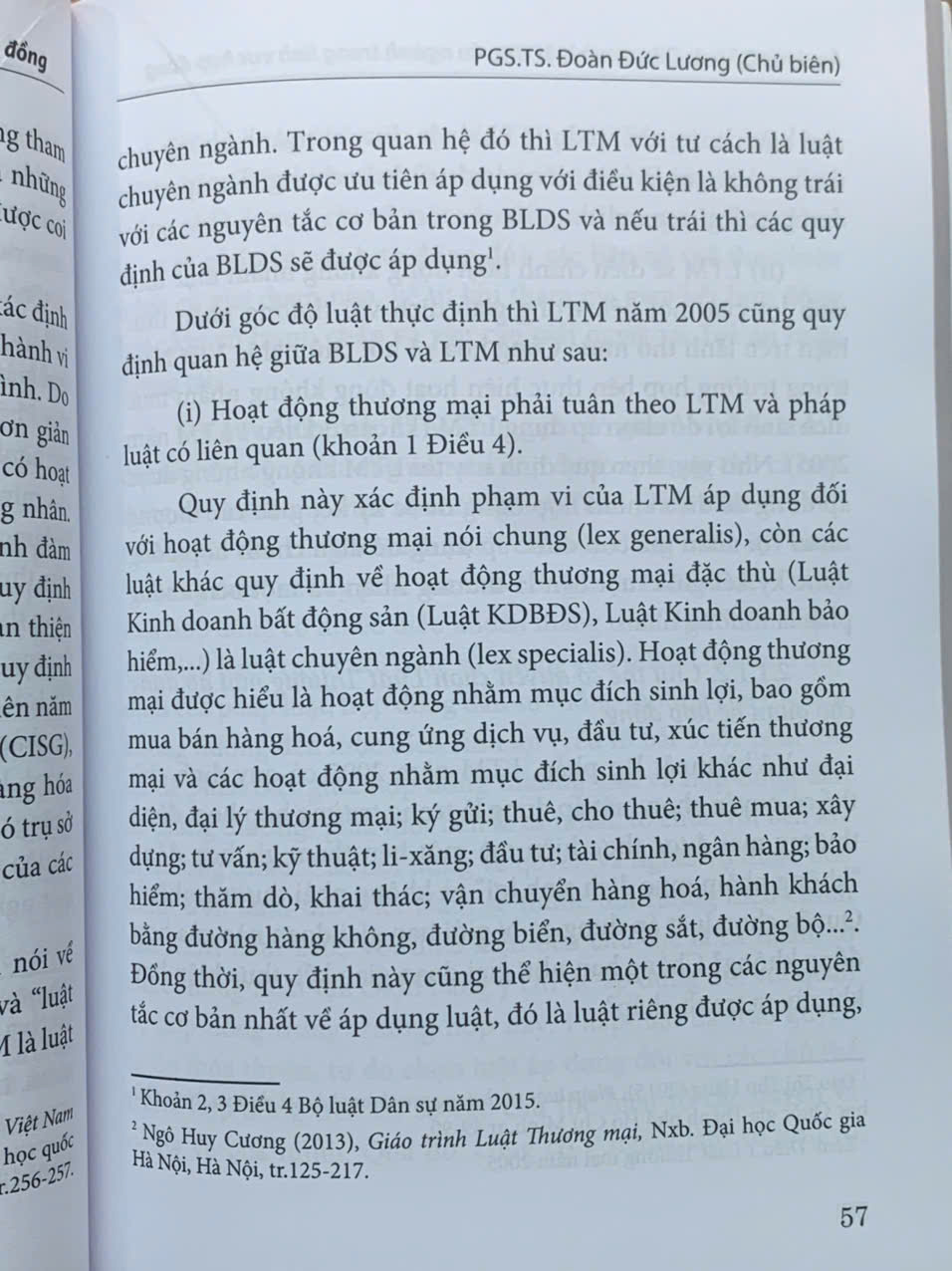 chuyên ngành quy định trong từng lĩnh vực là luật “cụ thể”, đây là sự thay đổi căn bản của Bộ luật Dân sự năm 2015 so với Bộ luật Dân sự năm 2005. Bộ luật Dân sự năm 2005 không quy định cụ thể xử lý mối quan hệ giữa Bộ luật Dân sự và các luật chuyên ngành, sau đó, vẫn chưa có những văn bản có tính chất nhất quán hướng dẫn áp dụng Bộ luật Dân sự là “luật chung với các luật cụ thể trong từng lĩnh vực. Do đó, trong thực tế, đã phát sinh vướng mắc về việc áp dụng pháp luật khi một số quy định của Bộ luật Dân sự năm 2005 khác với quy định của các luật chuyên ngành. Trên thực tiễn, việc áp dụng pháp luật để xác định quyền và nghĩa vụ các bên trong hợp đồng vẫn tồn tại vướng mắc, thiếu tính thống nhất và đồng bộ. Điều này xuất phát từ nguyên nhân là Bộ luật Dân sự và luật chuyên ngành mặc dù đã điều chỉnh về cùng một vấn đề của quan hệ hợp đồng, tuy nhiên lại có quy định thiếu thống nhất. Đồng thời, luật chuyên ngành còn cho phép các bên được quyền lựa chọn luật áp dụng cho hợp đồng, tuy nhiên thực tiễn giải quyết tranh chấp thì có cơ quan tài phán lại chưa quan tâm đúng mức, từ đó đã làm ảnh hưởng đến quyền và lợi ích hợp pháp của các bên trong hợp đồng. Để khắc phục bất cập trên, Bộ luật Dân sự năm 2015 đã quy định cụ thể nguyên tắc áp dụng tại Điều 4.