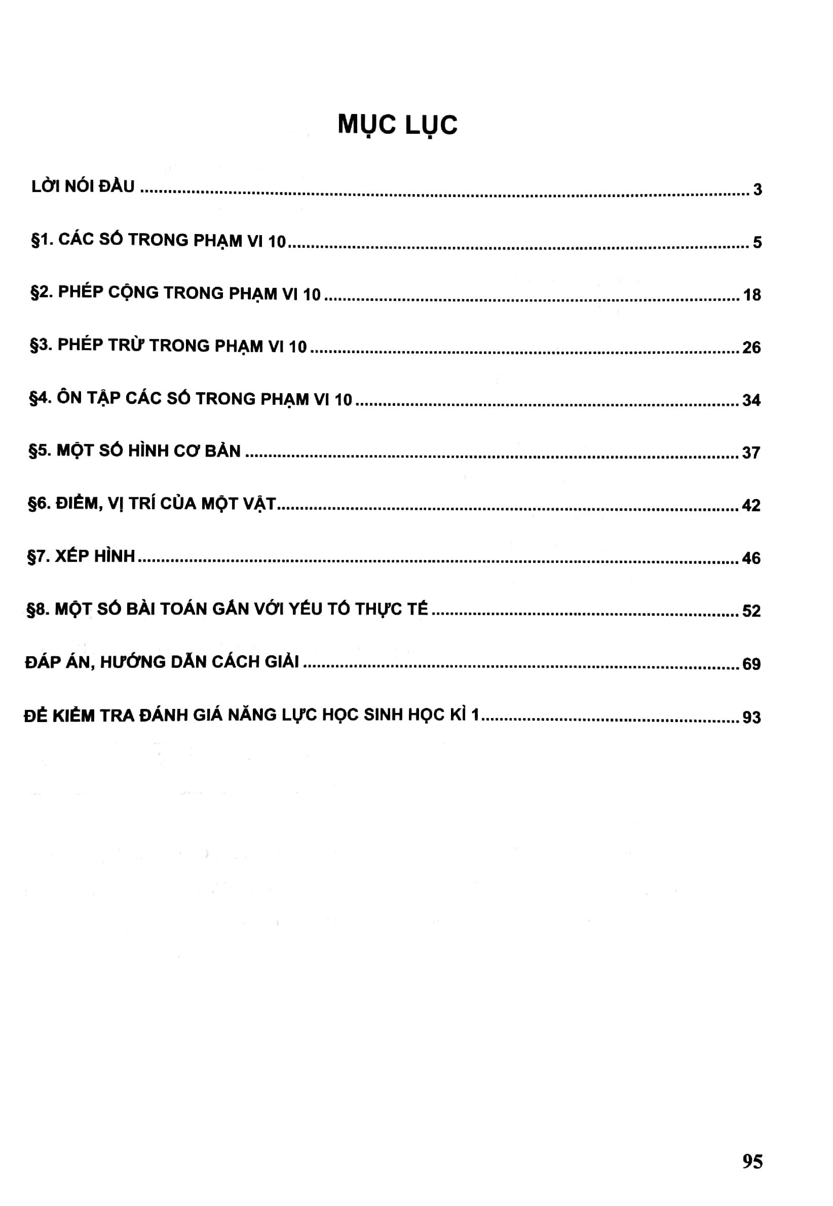 Trong phần này, chúng tôi đưa ra các đề bài toán theo từng chủ đề với các dạng toán khác nhau theo chương trình môn Toán lớp 1 cùng một số bộ đề kiểm tra, đánh giá năng lực học sinh.