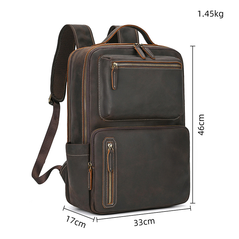 Kích thước : rộng 33cm X cao 46cm X dày 17cm Trọng lượng: 1.1 kg Màu sắc: Nâu, Nau sẫm, Đen Phương pháp sản xuất: thủ công Chất liệu : Da BÒ THẬT Chức năng: thoáng khí, chống mài mòn, dễ làm sáng, chống sốc thiết kế : phong cách trẻ trung ,sang trọng, đẳng cấp