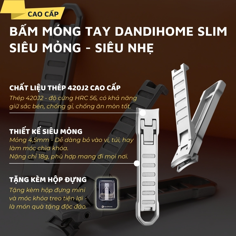 Bấm móng tay DandiHome slim siêu mỏng, siêu nhẹ - Tặng kèm hộp đựng và móc khóa BẢO HÀNH 6 THÁNG