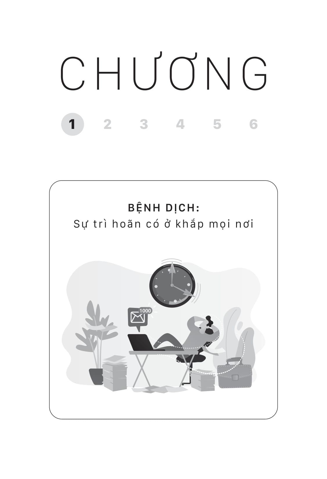 Bạn có từng cảm thấy dường như m.ình sở hữu thời gian vô biên nhưng lại không đủ thời gian cho mọi việc, luôn bận rộn và mệt mỏi nhưng hiếm khi biết rõ m.ình đang làm gì, cứ thế mông lung tiến về tương lai? Bạn đã từng thử thách bản thân hoàn thành công việc sát hạn chót để rồi tự hào rằng "áp lực tạo ra kim cương", m.ình đã lầy lội thế rồi mà vẫn xong việc, m.ình phải giỏi lắm thì mới gấp rút được như thế? Nếu gặp triệu chứng trên, hẳn là bạn đã mắc phải căn bệnh trì hoãn rồi.