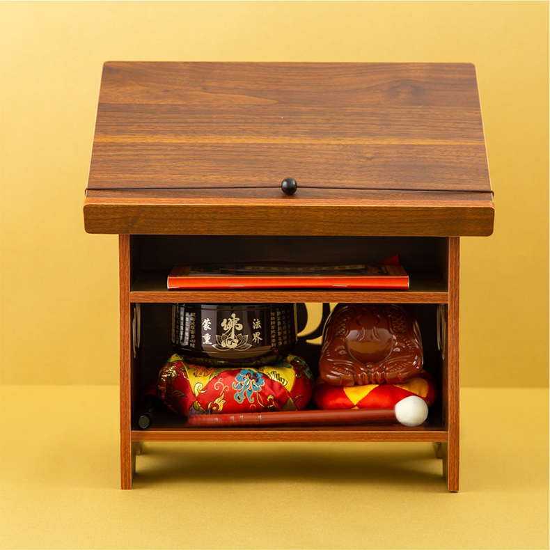 ✨Bàn để sách đọc kinh phật họa tiết hoa sen 3 tầng có kệ để chuông mõ thương hiệu IGA - GP270