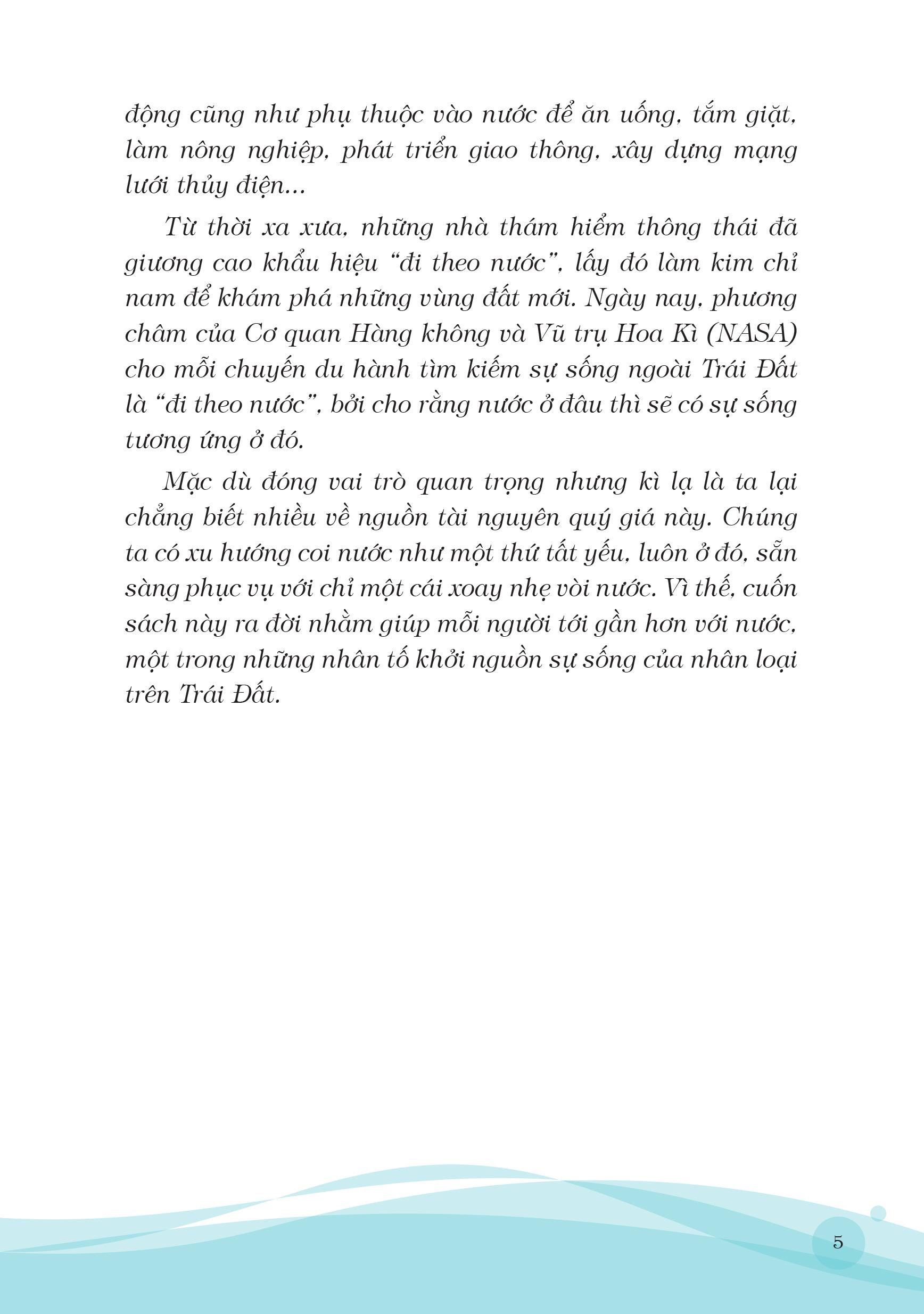 Trong bản hòa âm hùng tráng, mênh mang và mĩ lệ của Trái Đất, tồn tại một bản giao hưởng riêng không kém phần hài hòa, nhịp nhàng được kiến tạo bởi nguồn tài nguyên quý giá và quen thuộc với con người. Đó chính là nước. Nước bảo vệ chúng ta khi mới chỉ là bào thai trong bụng mẹ và tồn tại bên trong chúng ta suốt cuộc đời.