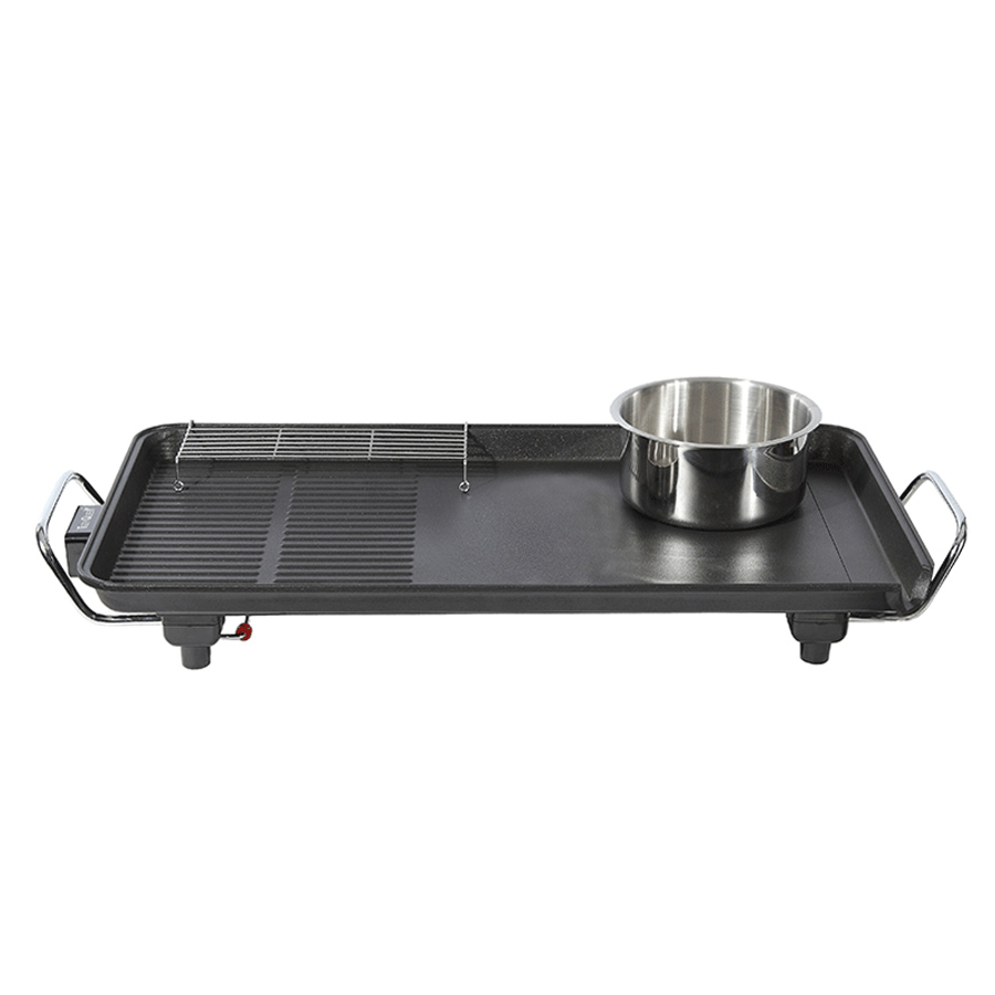 Bàn Nướng Điện Tiger Queen SQ-1300G có thiết kế nhỏ gọn, sang trọng, hiện đại, thích hợp đặt ở mọi nơi trên gian bếp nhà bạn. Bàn nướng được cấu tạo từ linh kiện cao cấp, không chứa chất độc hại và chịu nhiệt tốt giữ bàn nướng điện lâu phai màu với độ bền cao theo thời gian sử dụng. Đi kèm với bàn nướng điện là tô đựng canh và rế làm ráo dầu tiện lợi cho việc nấu nướng. Mặt bàn nướng điện Tiger Queen SQ-1300G được chia thành 2 khu vực nướng khác nhau để có thể nướng 2 món ăn có hương vị khác nhau cùng 1 lúc.