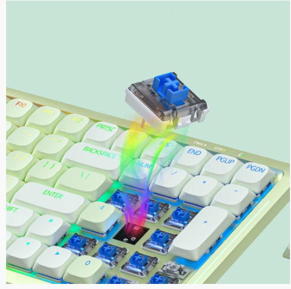 Keycap sử dụng pbt mờ, phối mầu gradient, so với keycap truyền thống, chúng có khả năng chống mài mòn cao hơn và sử dụng lâu dài mà không cần bôi trơn, bề mặt tiếp xúc hình cầu, thoải mái hơn khi chạm vào