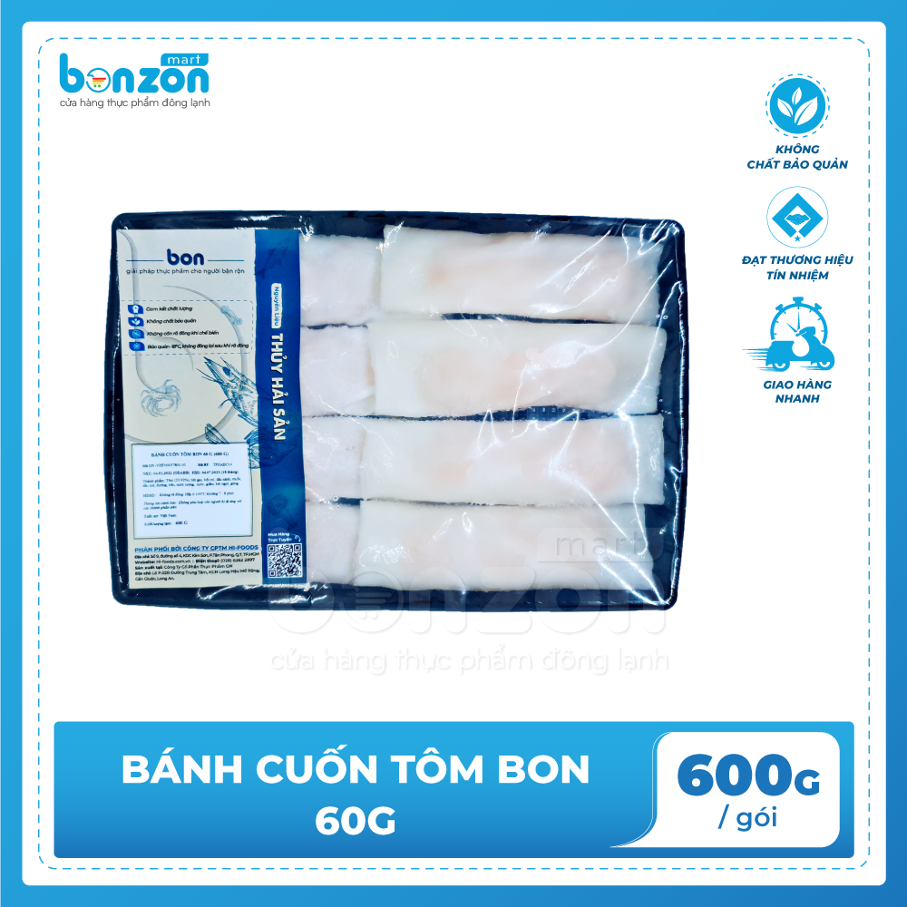 Với sản phẩm tươi sống, trọng lượng thực tế có thể chênh lệch khoảng 10%. ĐỊNH LƯỢNG: 60 g/cái x 8 cái/gói + 60g nước chấm THÀNH PHẦN: Tôm, bột gạo MÔ TẢ SẢN PHẨM: - Vỏ bột màu trắng, hơi ửng màu đỏ hồng của tôm nguyên con - Vỏ bánh mỏng mềm mịn dẽo dai với phần nhân 100% tôm nguyên con - Ăn kèm với nước chấm bánh cuốn CÁCH CHẾ BIẾN: - Không rã đông - Hấp nhiệt độ 100°c, thời gian từ 4'-5' BẢO QUẢN: - Giữ đông từ -15 đến -18°C. Không đông lại sau khi rả đông - Bảo quản mát từ 0°C đến 5°C trong 3 ngày HSD: 12 tháng