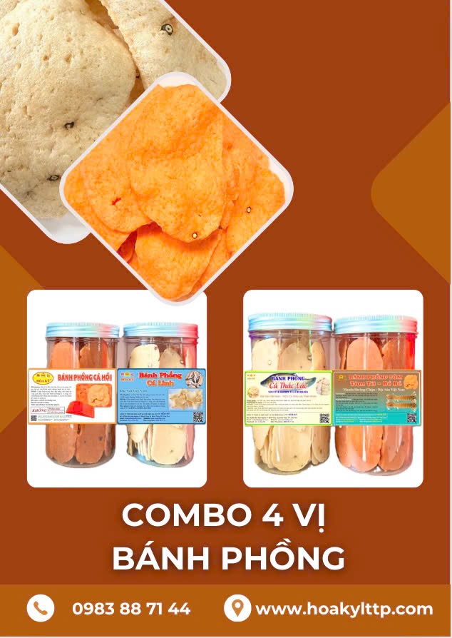 Món ăn mọi người đều rất thích và an toàn. Có nhiều loại bánh Phồng : BÁNH PHỒNG CÁ THÁC LÁC BÁNH PHỒNG CÁ LINH BÁNH PHỒNG CÁ HỒI BÁNH PHỒNG TÔM TÍT BỀ BỀ