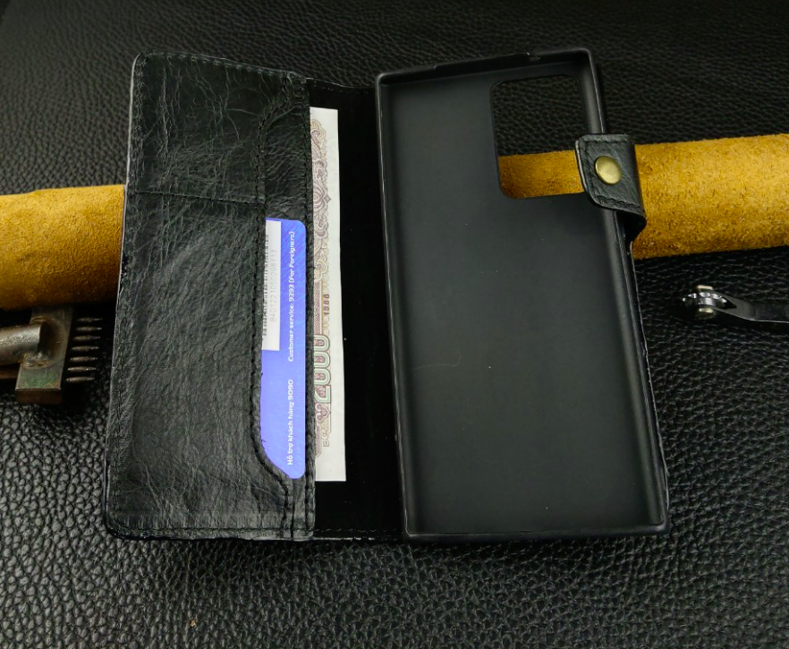 - Ngoài ra, bao da đựng điện thoại còn có nhiều tính năng tiện ích khác như chứa thẻ, tiền mặt hay giấy tờ, giúp bạn thoải mái đi lại mà không cần phải mang theo nhiều thứ.