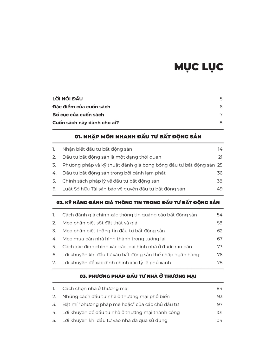 Cuốn sách trình bày một cách chi tiết các loại hình đầu tư bất động sản hiện nay, mỗi loại hình đều chỉ rõ ưu, nhược điểm, các phương pháp đầu tư, các cạm bẫy cần tránh cho nhà đầu tư mới gia nhập thị trường.