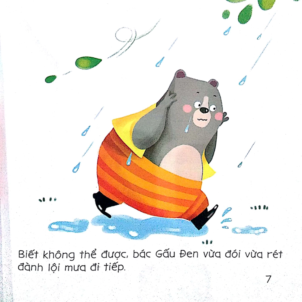 Câu chuyện kể về một ngày mưa tầm tã, bác Gấu Đen đi chơi bị ướt lướt thướt. Trong lúc lạc đường, bác tình cờ gặp nhà của hai chú Thỏ. Cuộc gặp gỡ bất ngờ này đã mang đến cho bác Gấu Đen một nơi trú ẩn ấm áp. Tuy nhiên, câu chuyện lại có một tình huống bất ngờ xảy ra, khiến bác Gấu Đen phải tiếp tục cuộc hành trình của mình trong trời mưa.