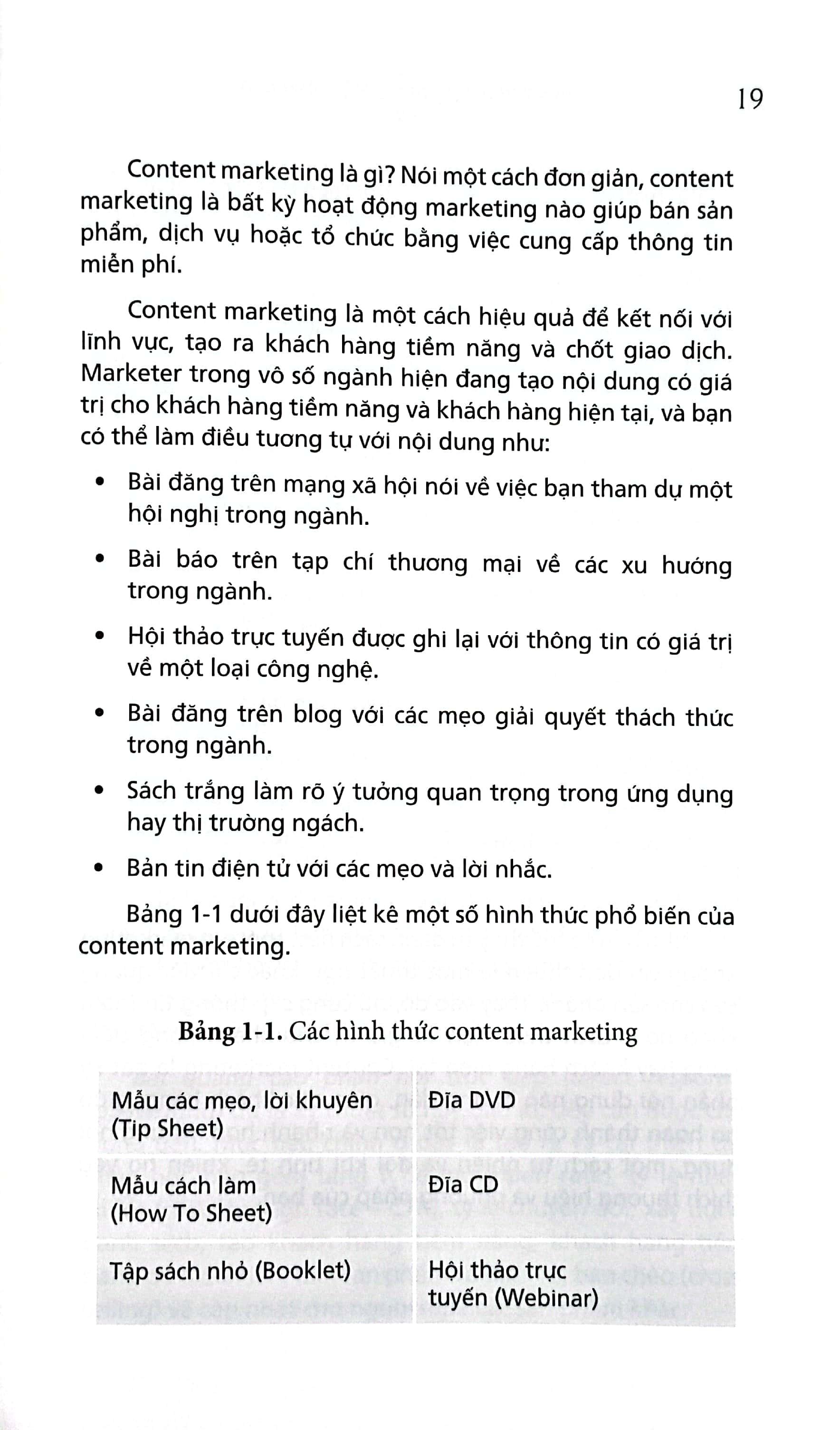 Bí Kíp Viết Content Đỉnh Cao giúp các doanh nhân, marketer và chủ doanh nghiệp nhỏ hiểu được vai trò thực sự của content trong các chiến dịch marketing đa kênh tích hợp, tránh lãng phí thời gian và tiền bạc bằng cách cứ tạo content mà không có tỷ suất hoàn vốn (ROI). Thay vào đó, sách hướng dẫn cách tạo và cung cấp nội dung để xây dựng lòng tin, kích thích sự quan tâm của khách hàng, và chạm đến mục đích cuối cùng của việc kinh doanh là bán hàng.