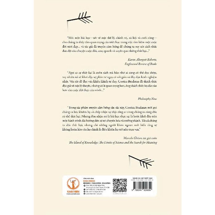Cuốn sách không phải là một bản tuyên ngôn hay thậm chí là một luận thuyết; nó xoay quanh lập luận, mà Bradatan đưa ra rất ít, hoặc đưa ra vừa đủ để khẳng định sự thất bại là một thực tại phải được chấp nhận trong đời. Với lối viết như kể chuyện nhưng ẩn đằng sau là những triết lý sống sâu sắc, Bradatan kể về cuộc sống của những người không chỉ đối mặt với thất bại mà còn chủ động mời gọi nó.