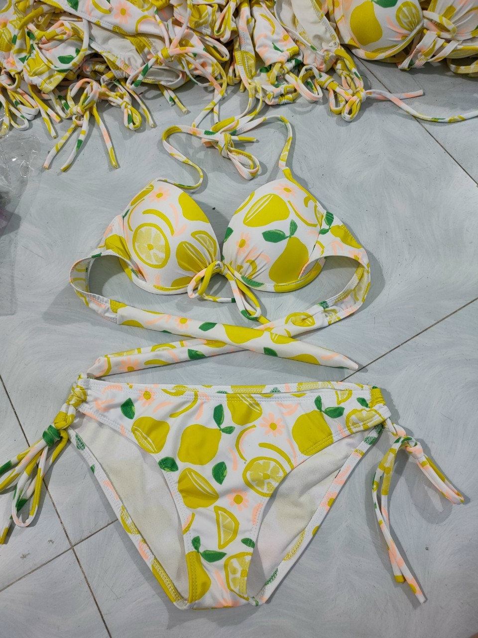 Chất thun loại 1 dày dặn, đanh mịn, không giữ nước nên rất nhẹ và mau khô. Lưu ý: Hiện nay trên thị trường có rất nhiều loại bikini nhưng cùng lấy 1 kiểu